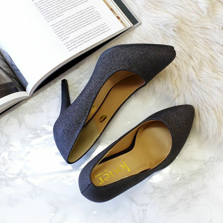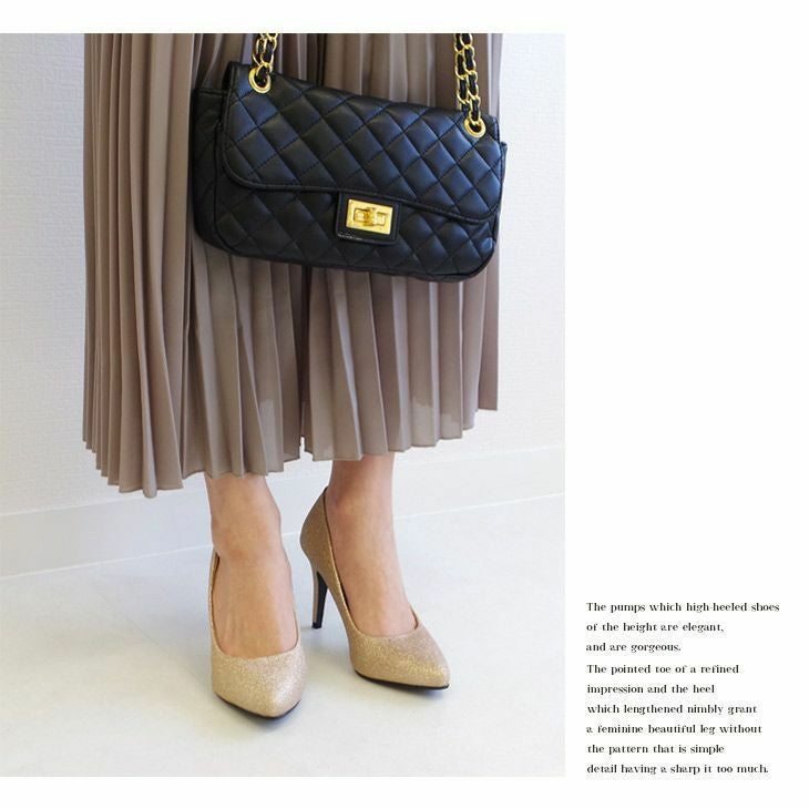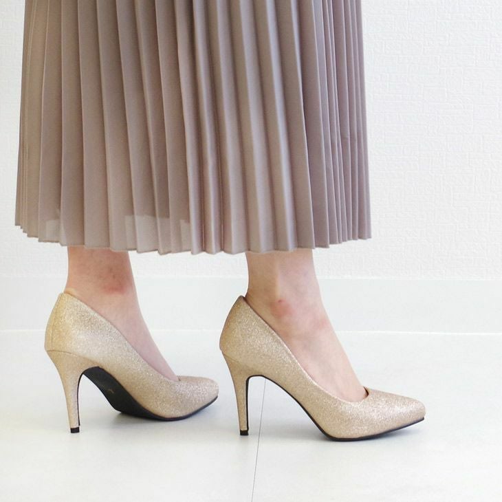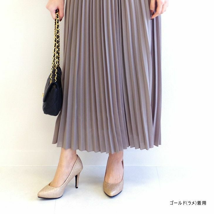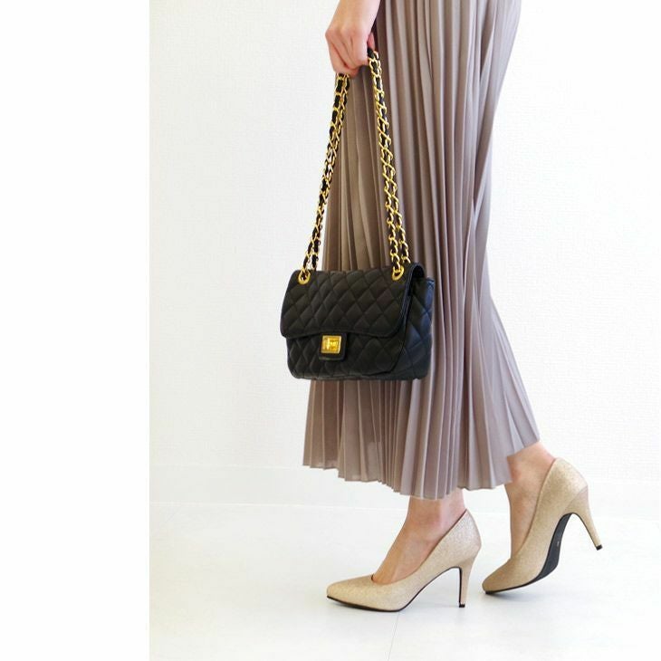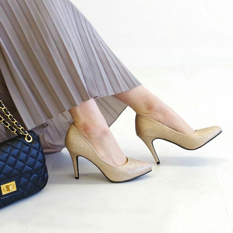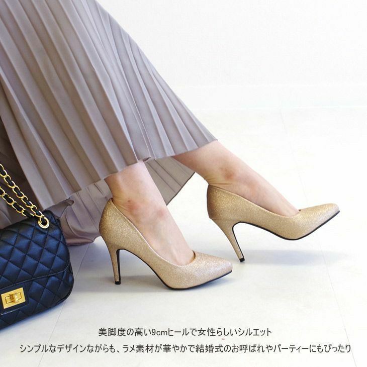 シンプルなデザインながらも、ラメ素材が華やかで結婚式のお呼ばれやパーティーにもぴったり!コーデに華を添えてくれるさりげないラメ感は、どんなドレスにも似合います。