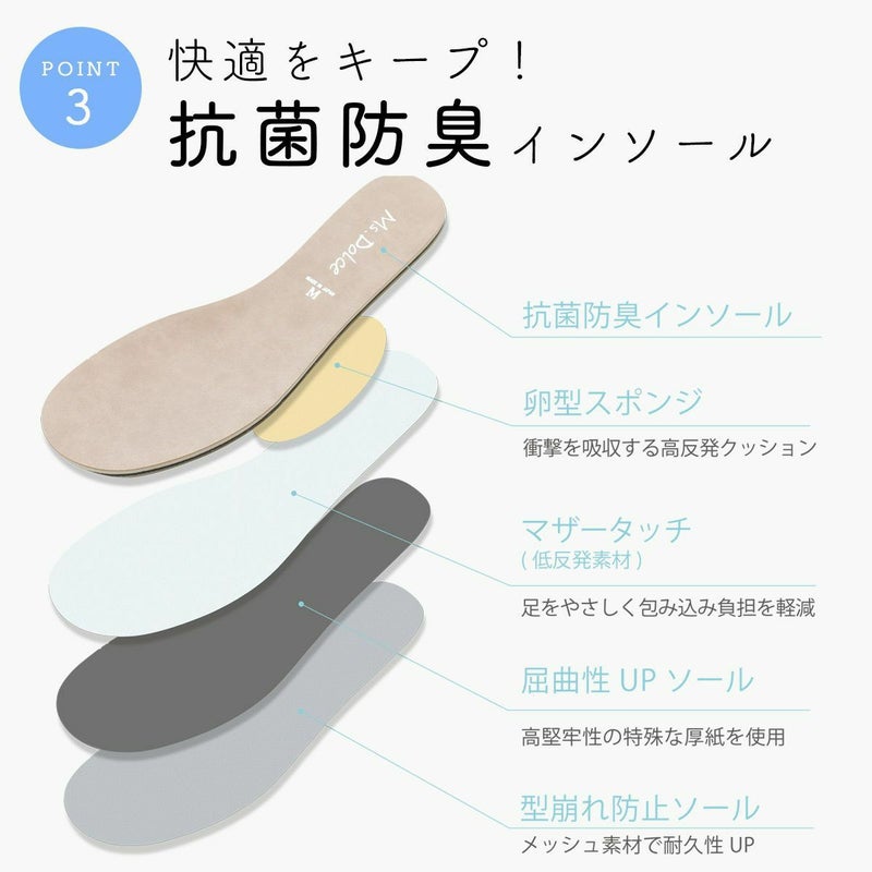涼しげなメッシュ素材で蒸れにくく夏でも快適コロンとしたラウンドトゥでカジュアルな足元に。
