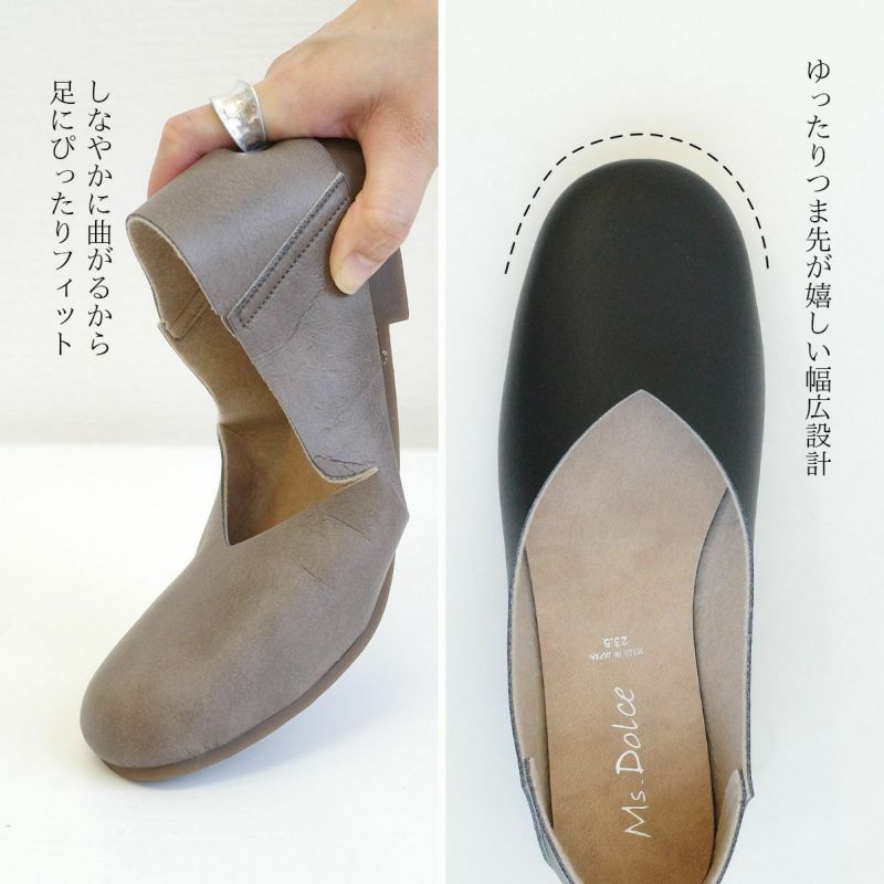 かかとを踏んで履ける2WAYスクエアトゥパンプス屈曲性が高く、柔らかい生地が足に馴染み歩きやすい。