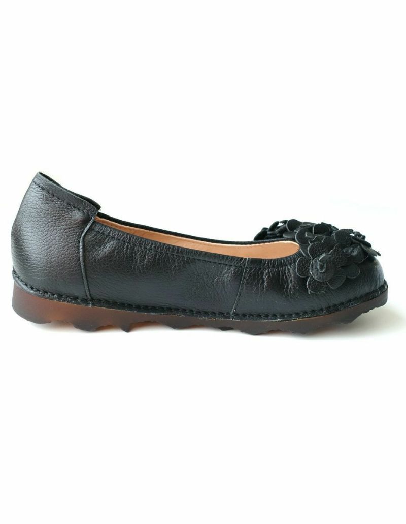 温もりを感じさせるフラワーモチーフが目を惹くフラットパンプス