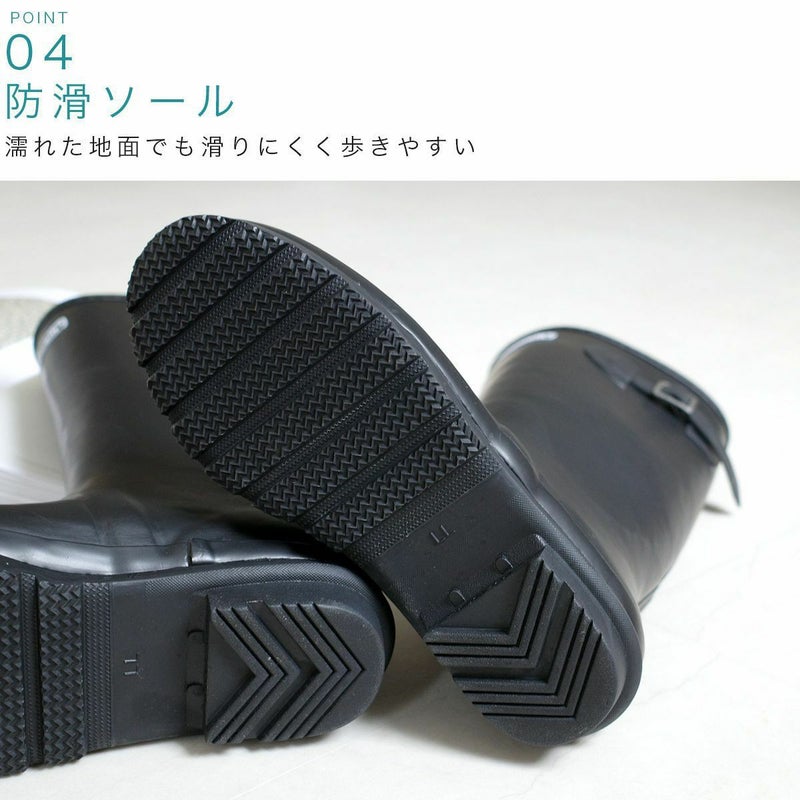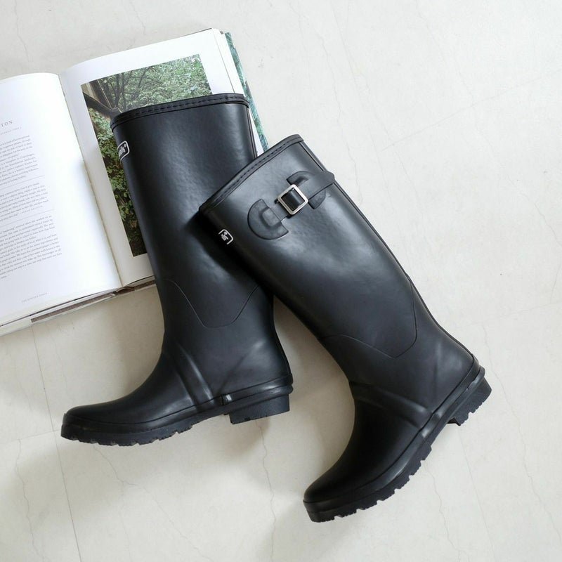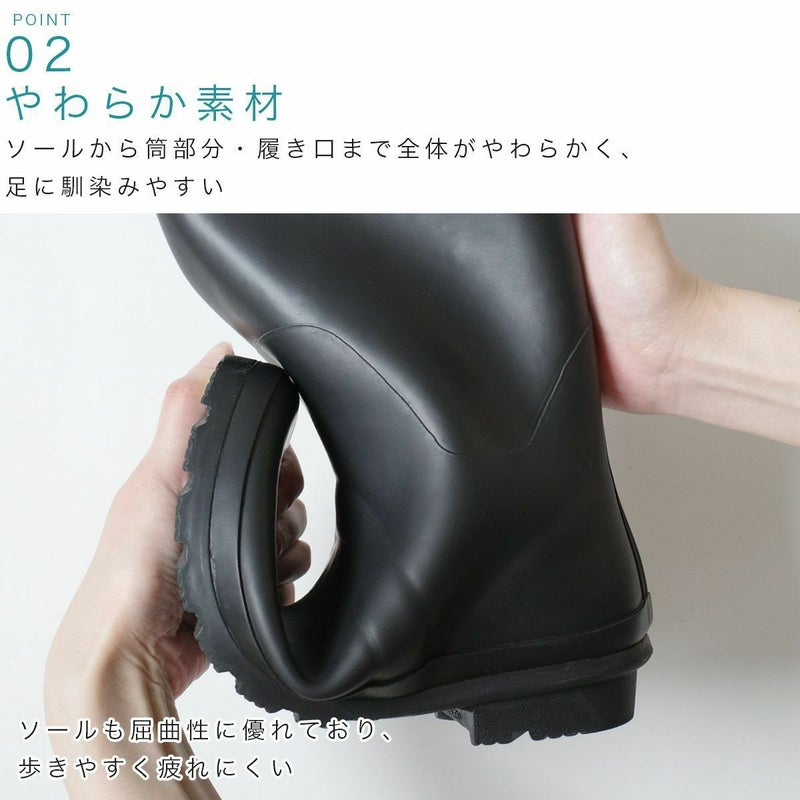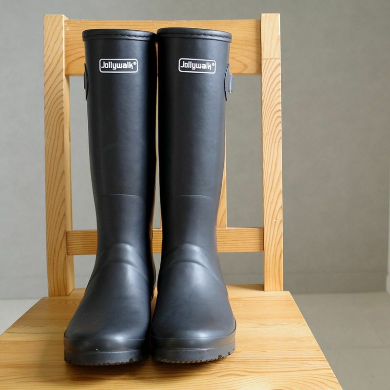 どしゃ降りの雨でも安心して履けるロング丈レインブーツ
