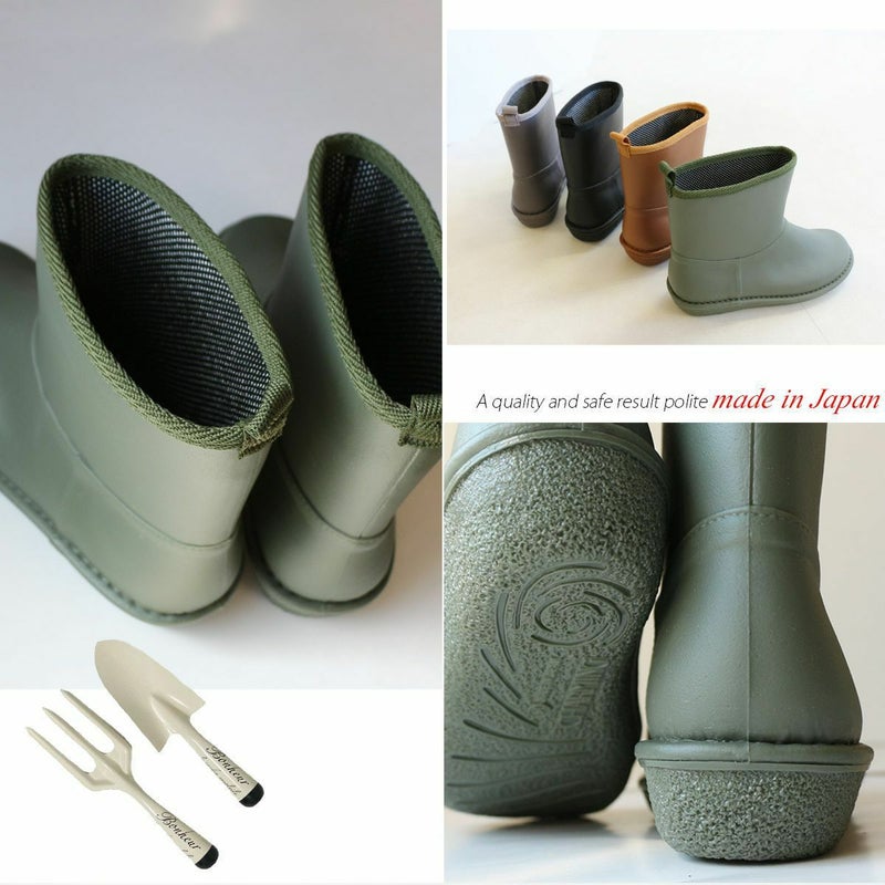 レインアイテムブーツ ショートレインアイテムブーツ 長靴 日本製 高品質 雨・晴れ兼用 撥水 ブラック ブラウン モスグリーン グレー ピンク 23.0~23.5~24.0~24.5~25.0 大きいサイズ 抗菌 防水 ガーデニング ラバーブーツ