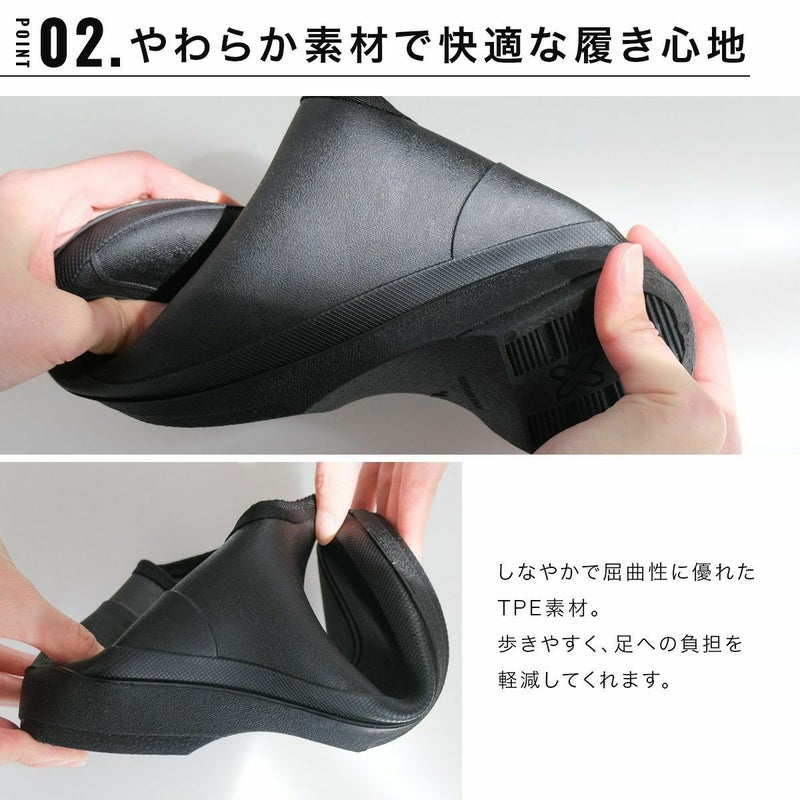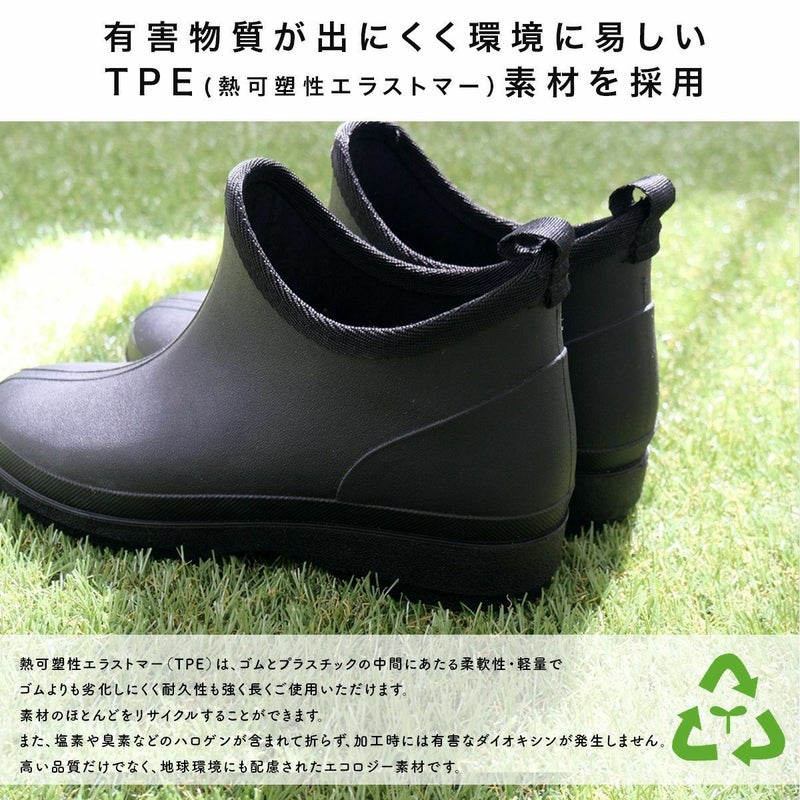 長靴のように履く手間もかからず水や汚れが気になる作業にも快適に履けます。リサイクル可能で環境にもやさしい今注目のTPE素材