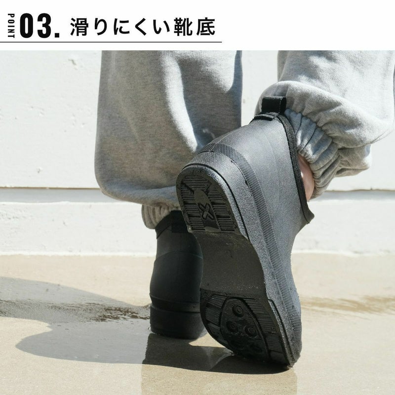 滑りにくい靴底仕様で、雨の日の散歩やガーデニング、洗車、アウトドアなどにもおすすめです。
