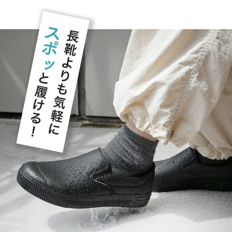 もちろん普段の雨の日の通勤・通学にも使っていただけて、雨がやんでも違和感のないシンプルなデザインで履く人を選びません。