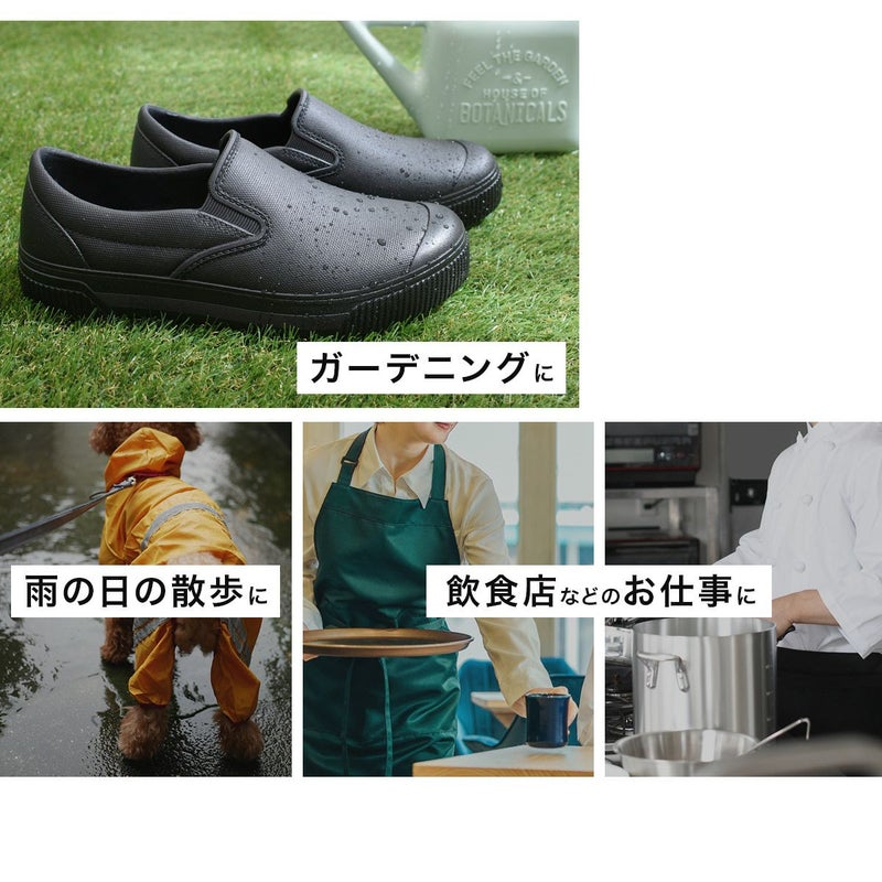 汚れや水濡れを気にせず、気軽にすぽっと履ける防水スリッポン