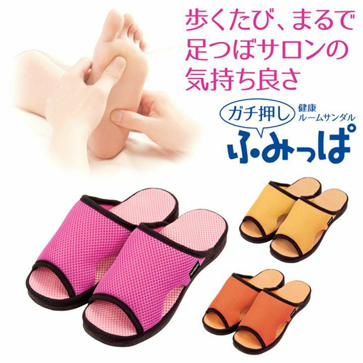 ガチ押し健康ルームサンダルふみっぱ ピンク イエロー オレンジ 健康サンダル 健康スリッパ 足ツボ 足裏 マッサージ 室内履き 足つぼマッサージ デスクワーク テレワーク リフレッシュ プレゼント グッズ