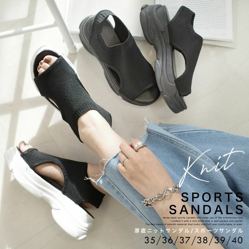 厚底ニットサンダルスポーツサンダル レディース