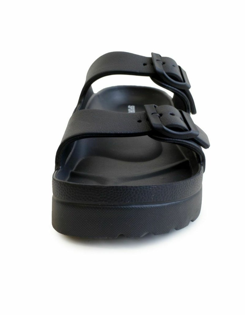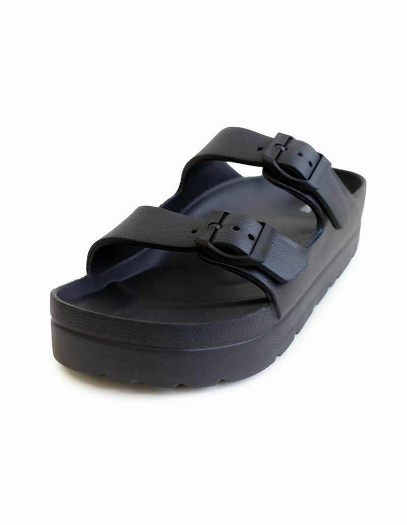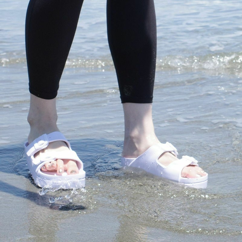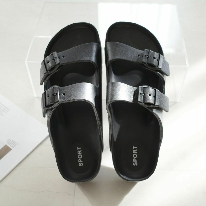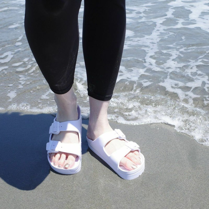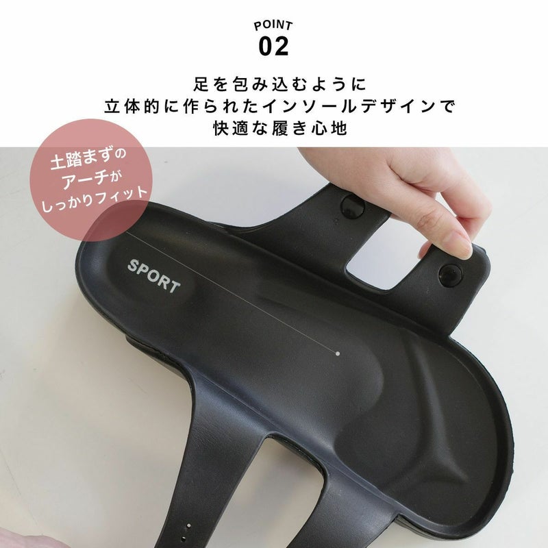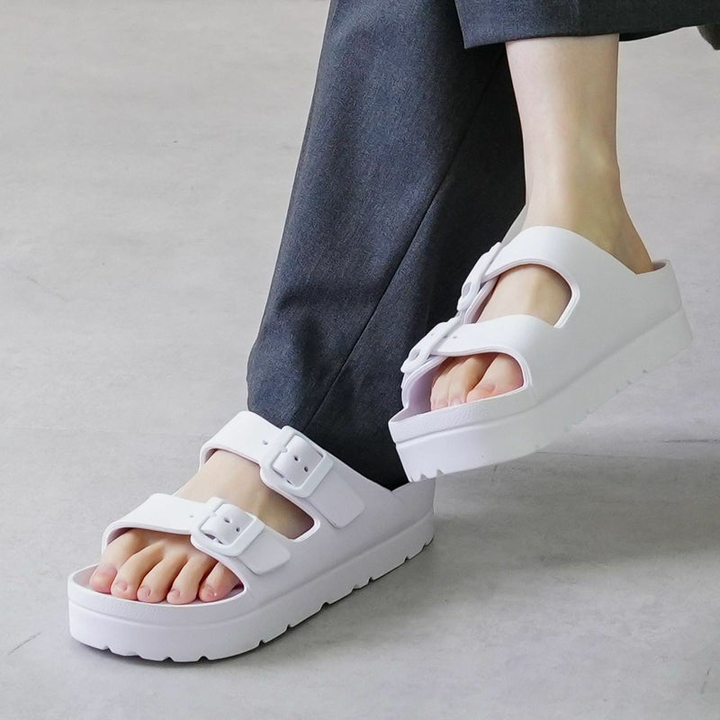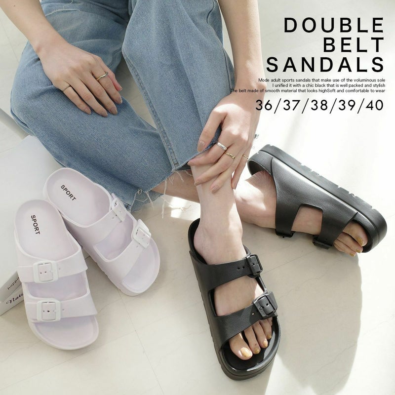 サッと履けて使いやすい、ダブルベルトサンダル。土踏まずのアーチがしっかりフィットして快適な履き心地。