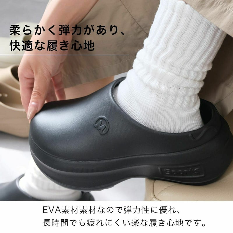 EVA素材なので濡れても汚れてもサッと拭き取るだけでOK!ラクに履けておしゃれ見え!