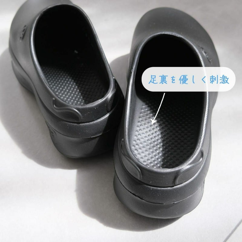 サイドに通気ホール付きでムレにくく、長時間でも快適な履き心地です。
