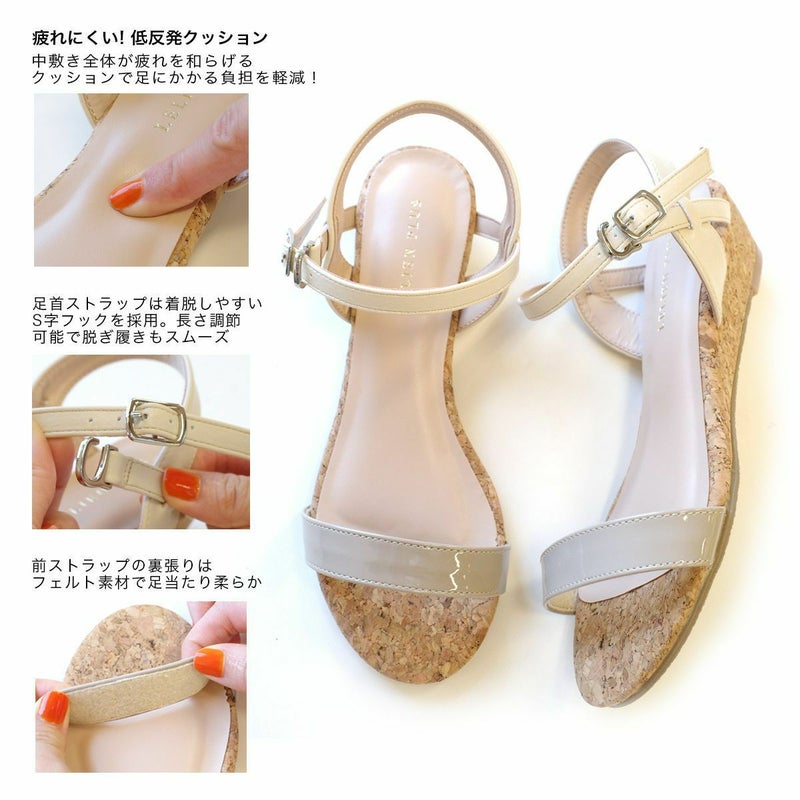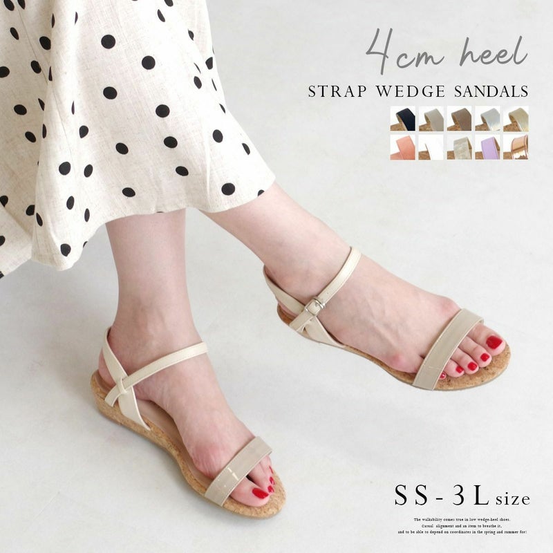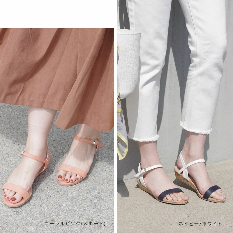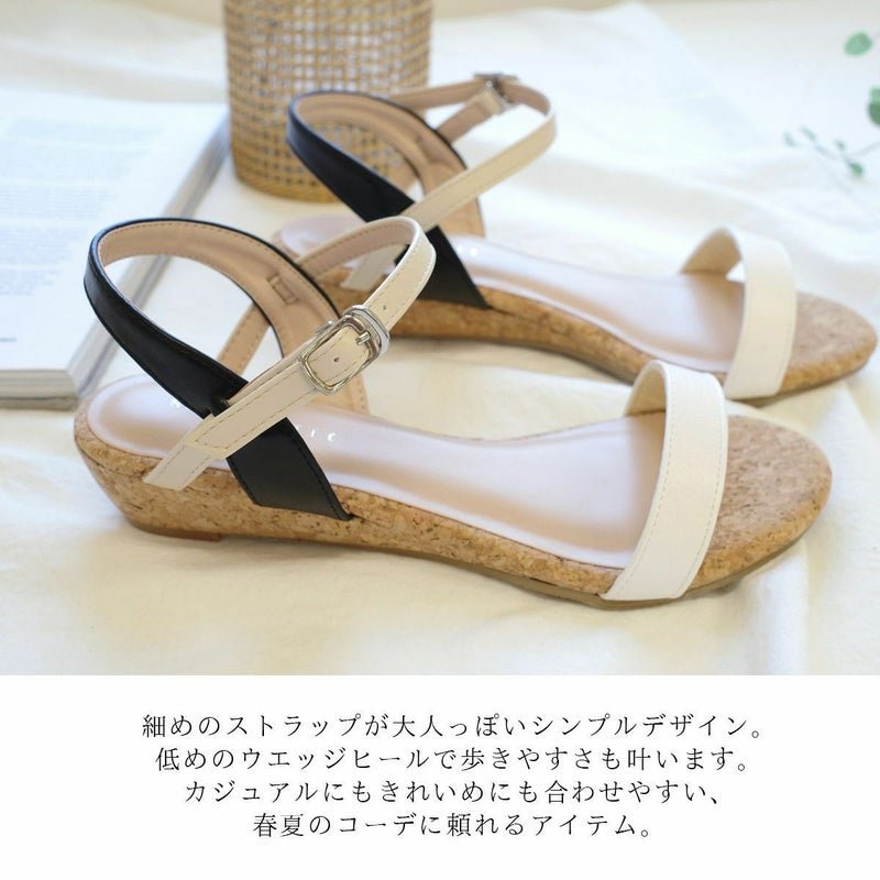 カジュアルにもきれいめにも合わせやすい、春夏のコーデに頼れるアイテム!細めのストラップが大人っぽくシンプルで、低めのウエッジヒールで歩きやすさも叶います。