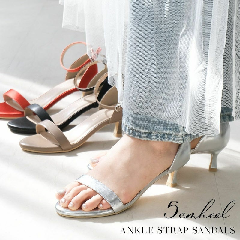 5cmヒールアンクルストラップサンダル レディース