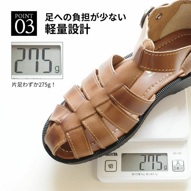 スナップボタン式で脱ぎ履きしやすく、片足わずか275gと驚きの軽さ。
