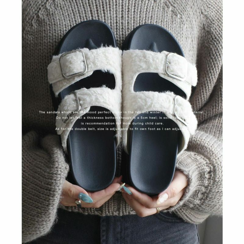 モコモコのボア素材で秋冬ムード満点なダブルベルトサンダル