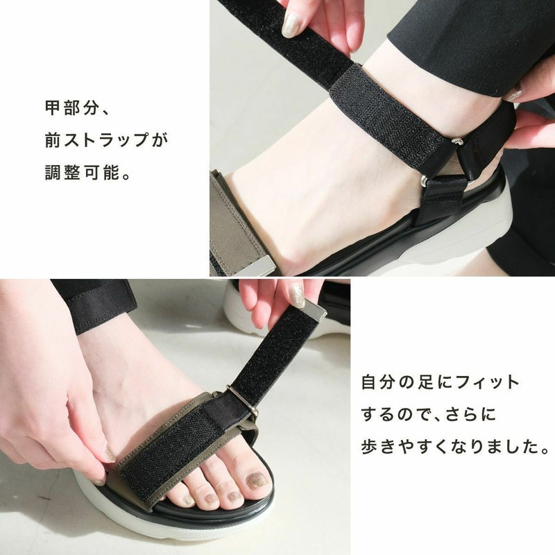 前後のストラップ一番きつくしてちょうどよく履けます。 足当たり柔らかくて履きやすいです!
