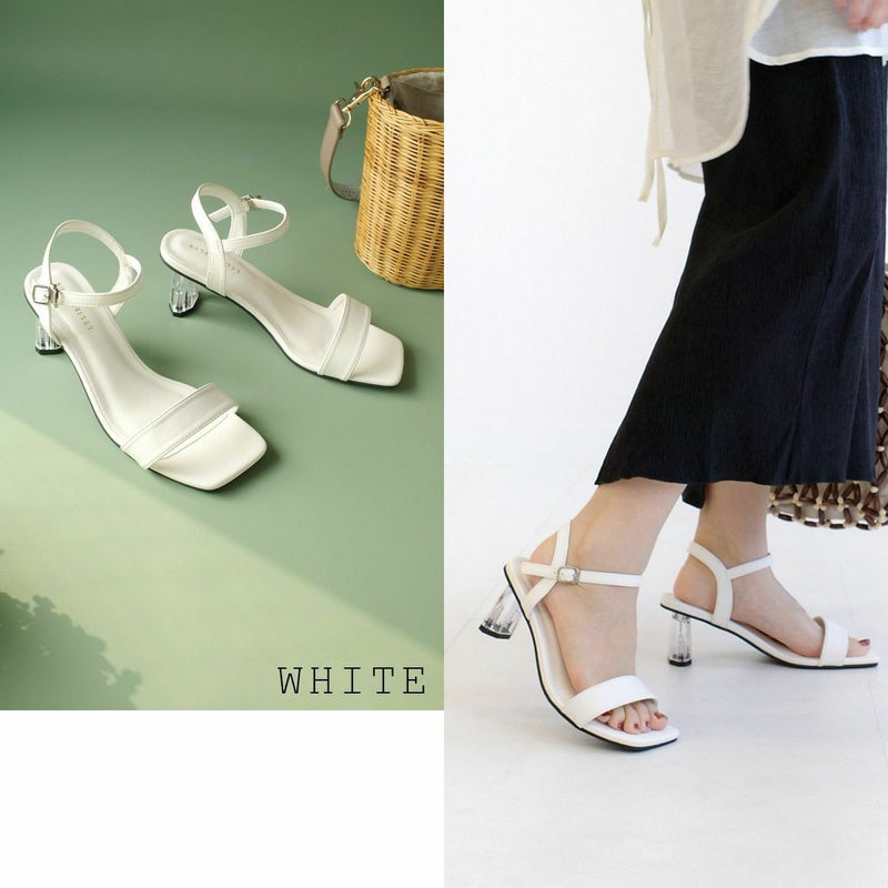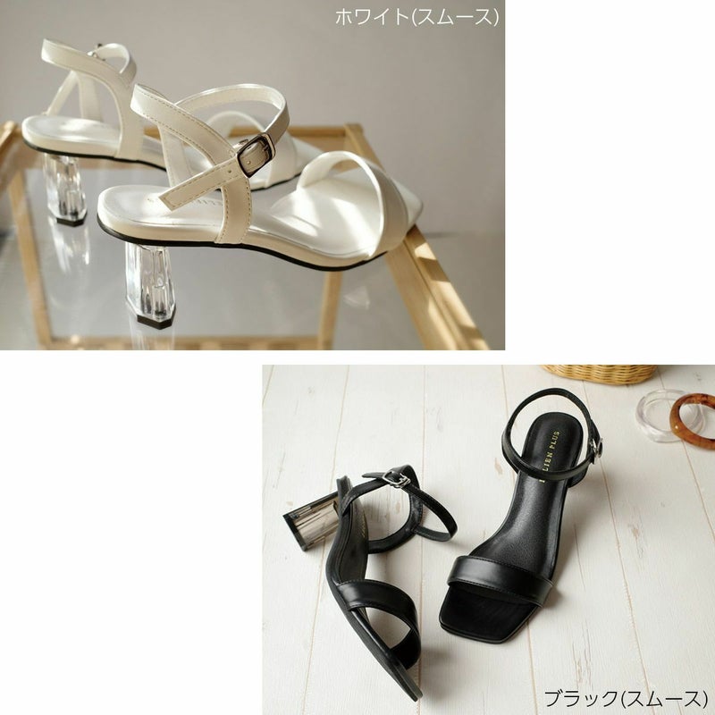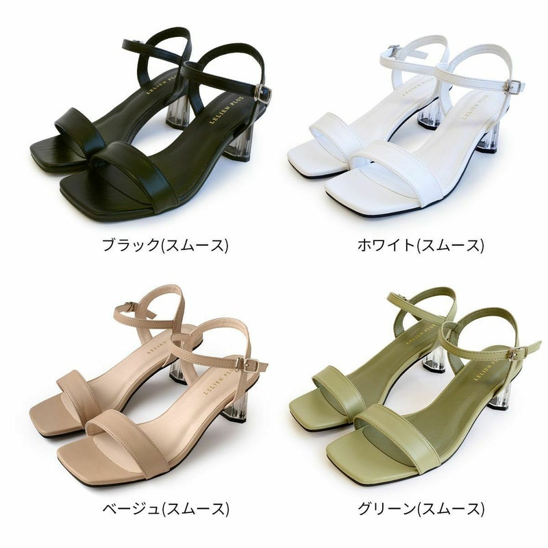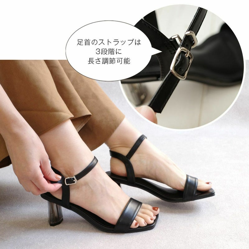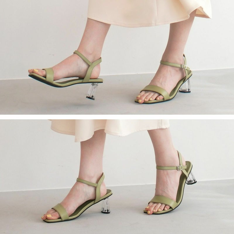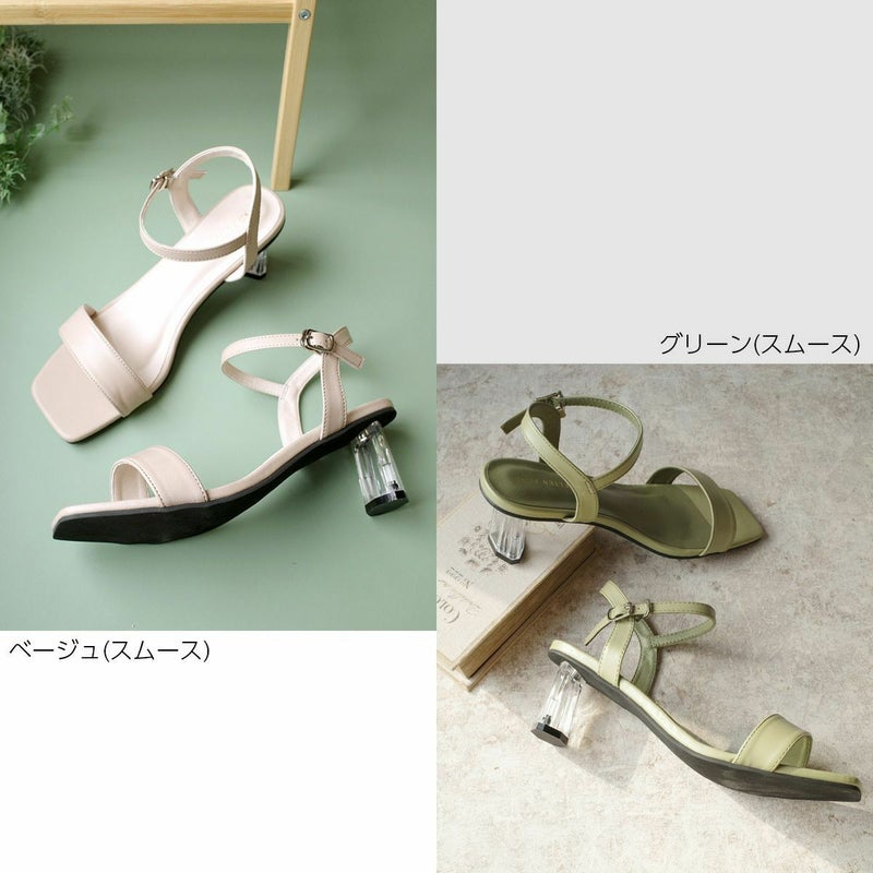 【在庫限り!特別価格!】スクエアトゥクリアヒールストラップサンダル レディース