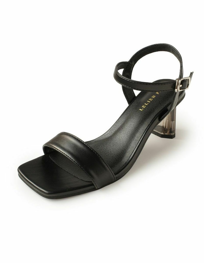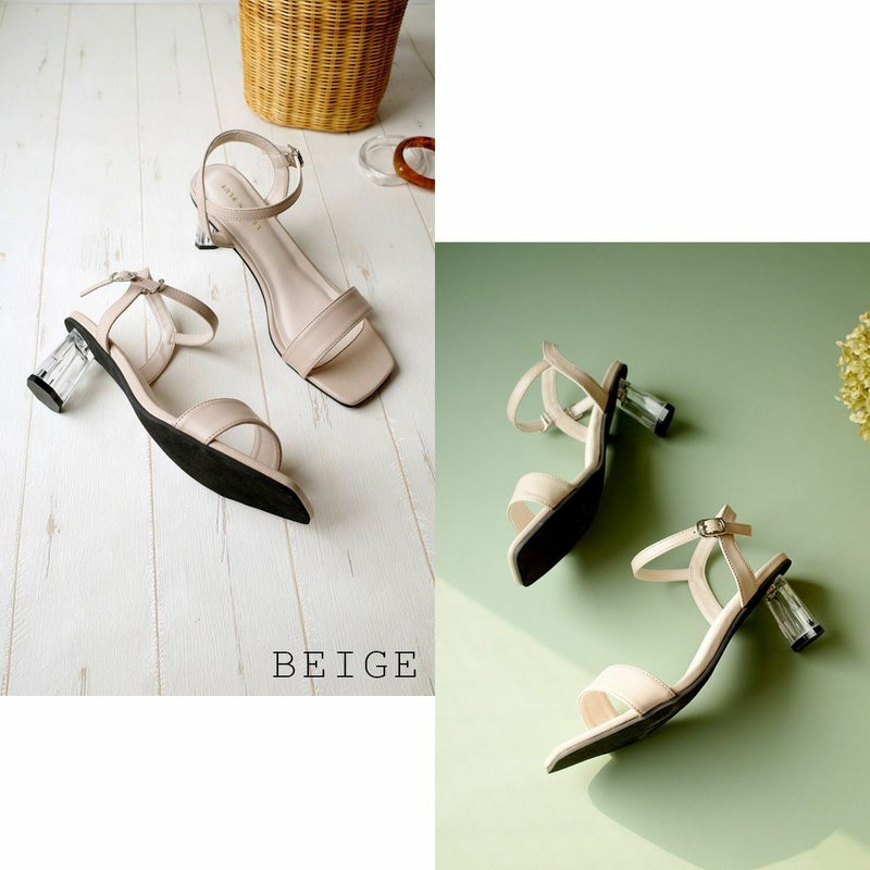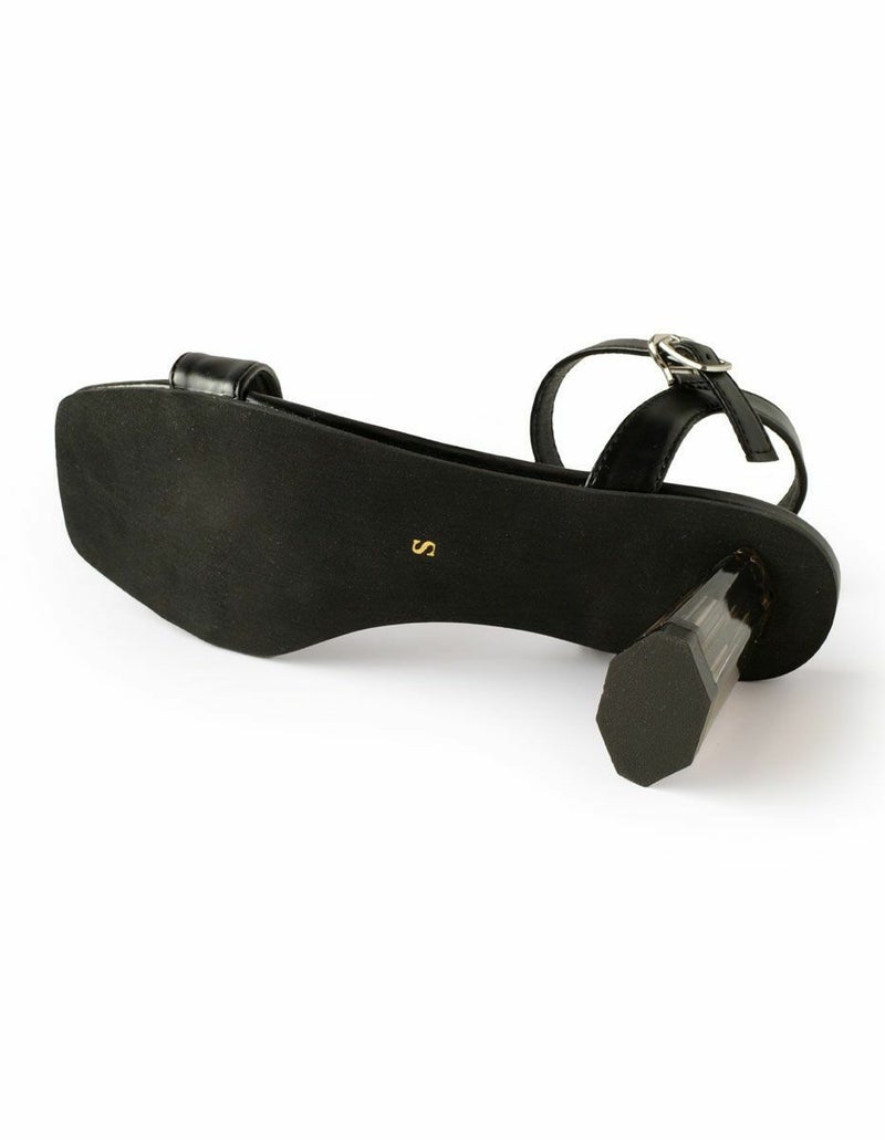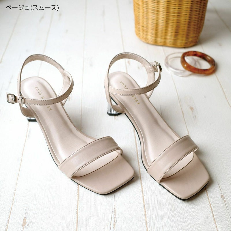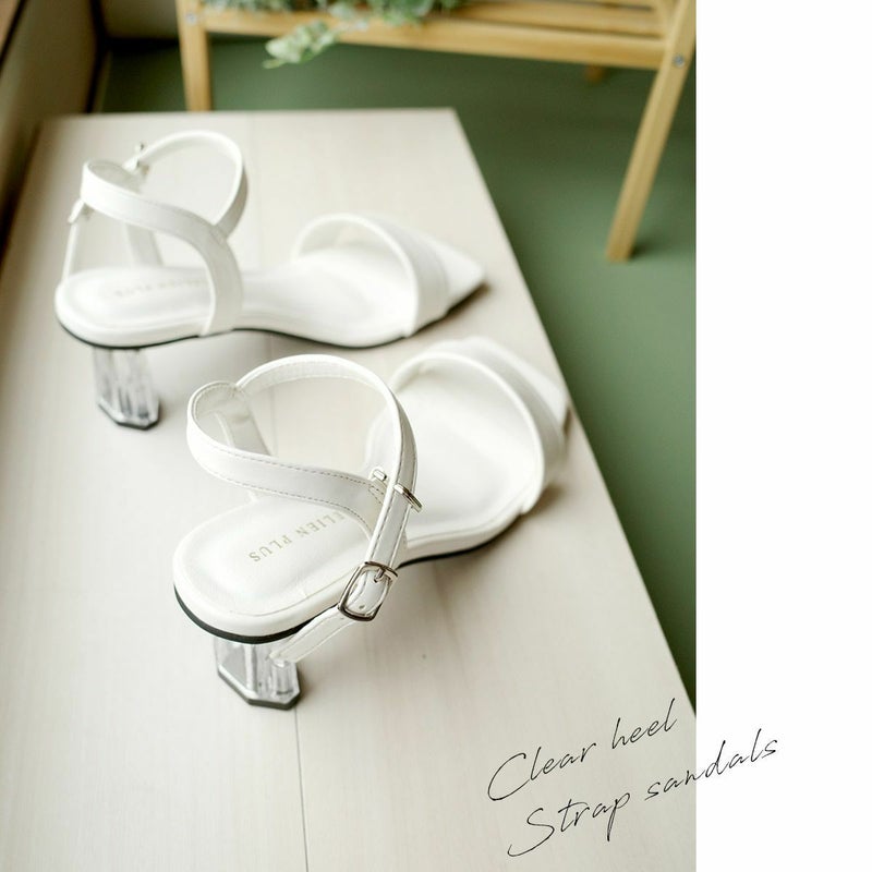 【在庫限り!特別価格!】スクエアトゥクリアヒールストラップサンダル レディース