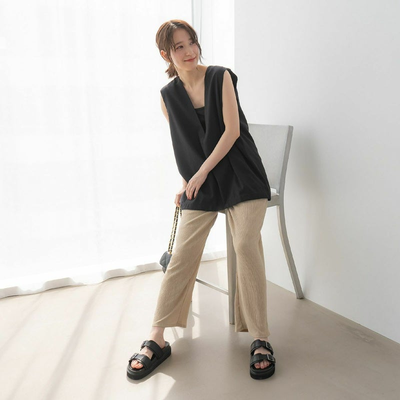 モノトーンのスムース素材なのでコーデに合わせやすく便利。