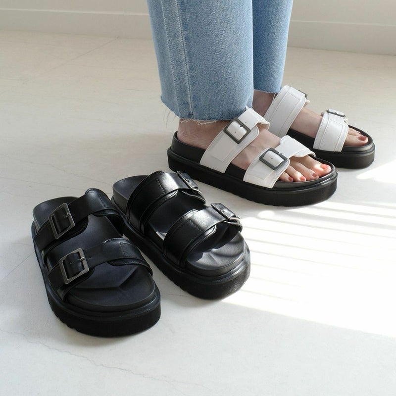 【返品交換不可】【在庫限り!特別価格!】厚底ダブルベルトストラップ レディース