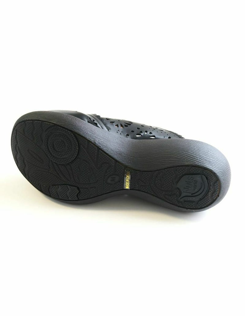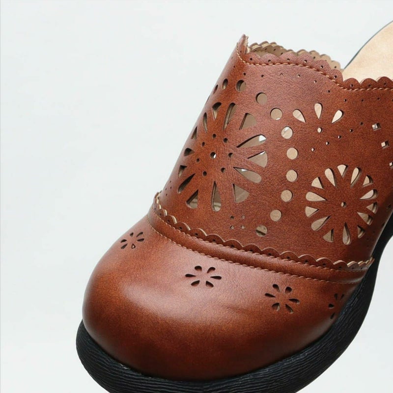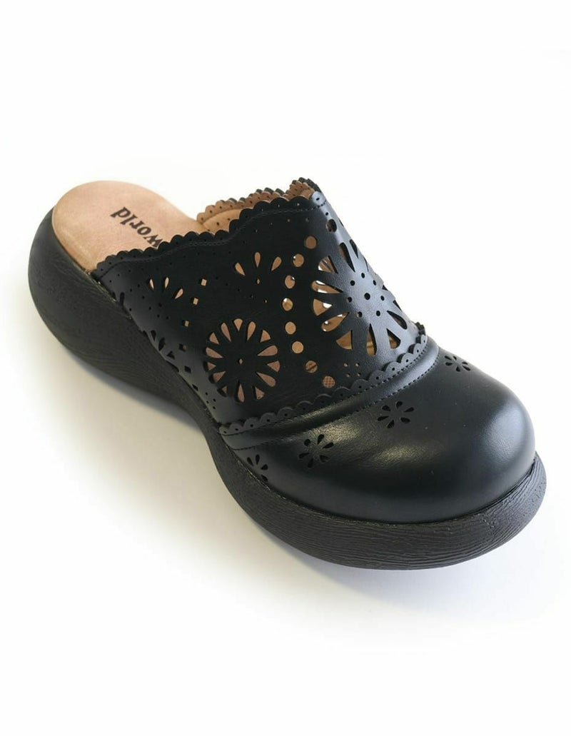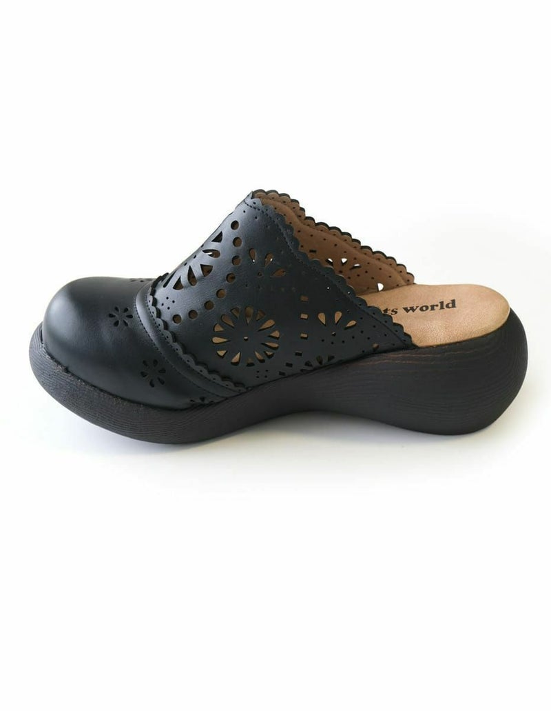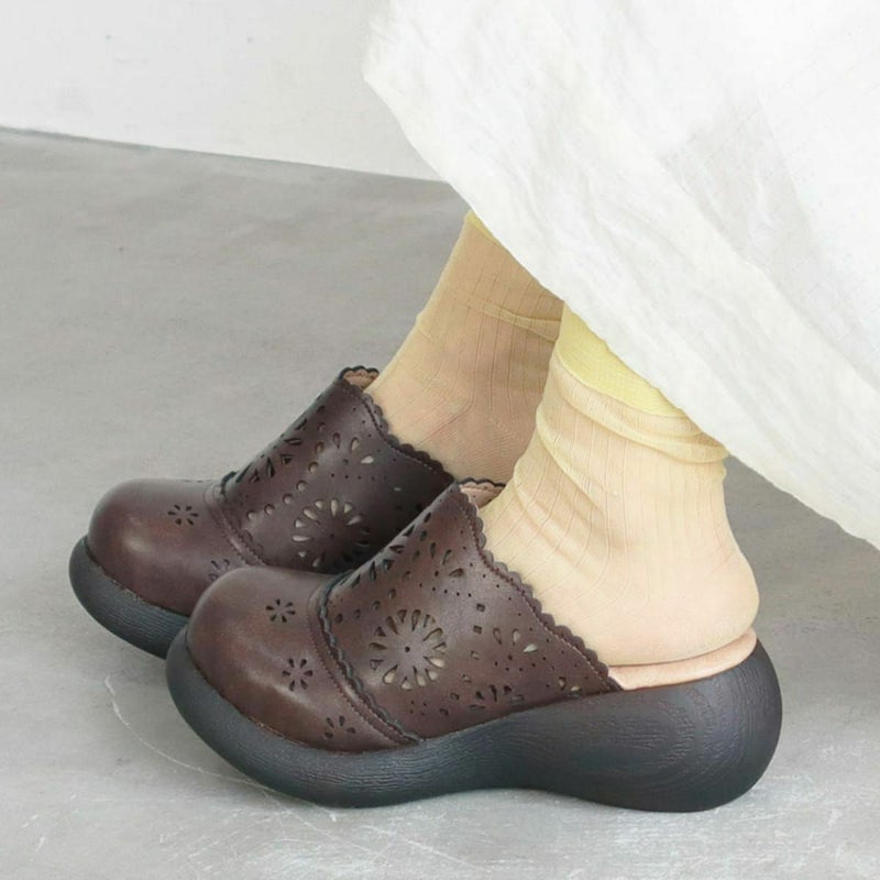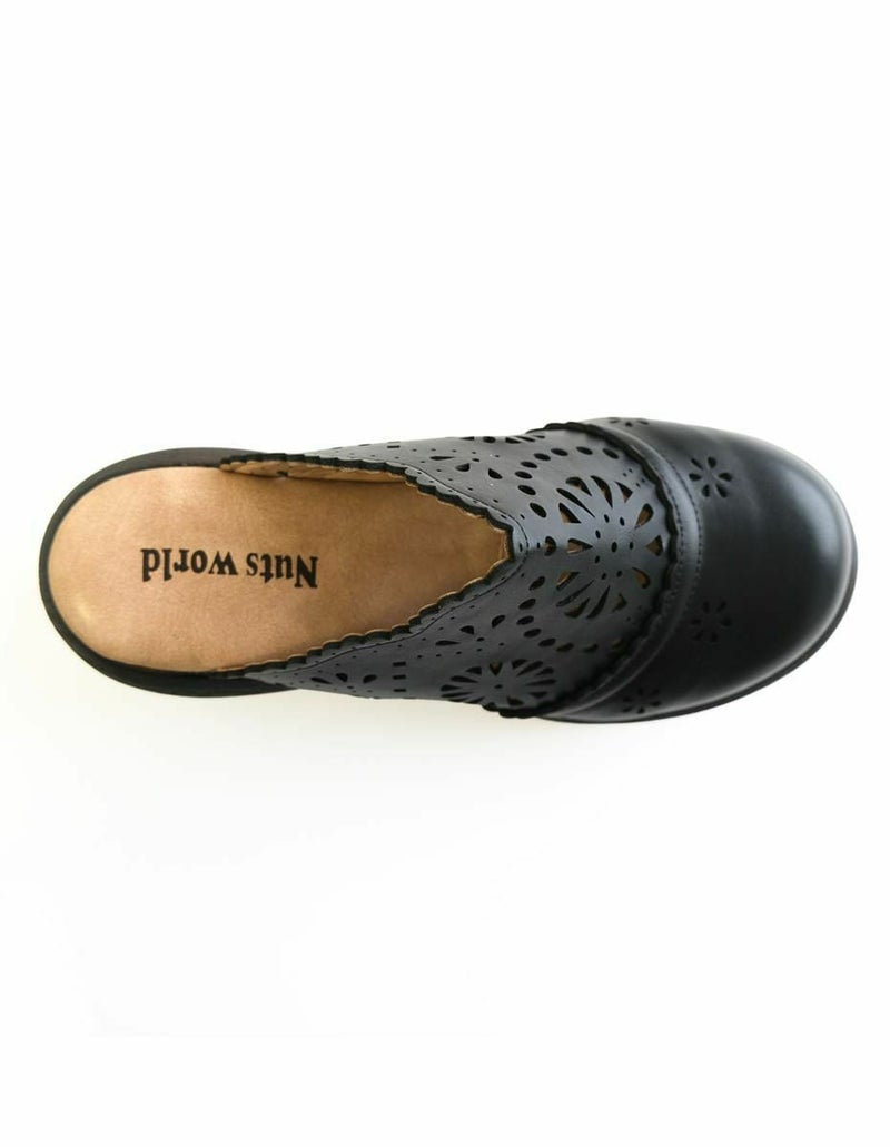 前に歩きやすい『ローリング設計』のソールがポイントです。ころんとかわいい + 歩きやすい “Nutsソール” を使ったサボサンダル。