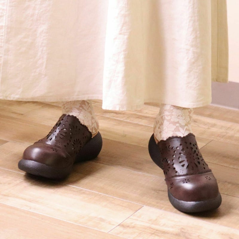 カットワークを甲に施したフェミニンなデザインです。