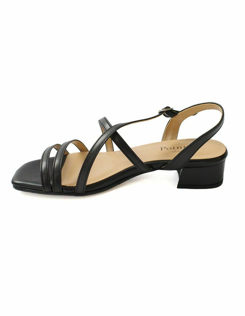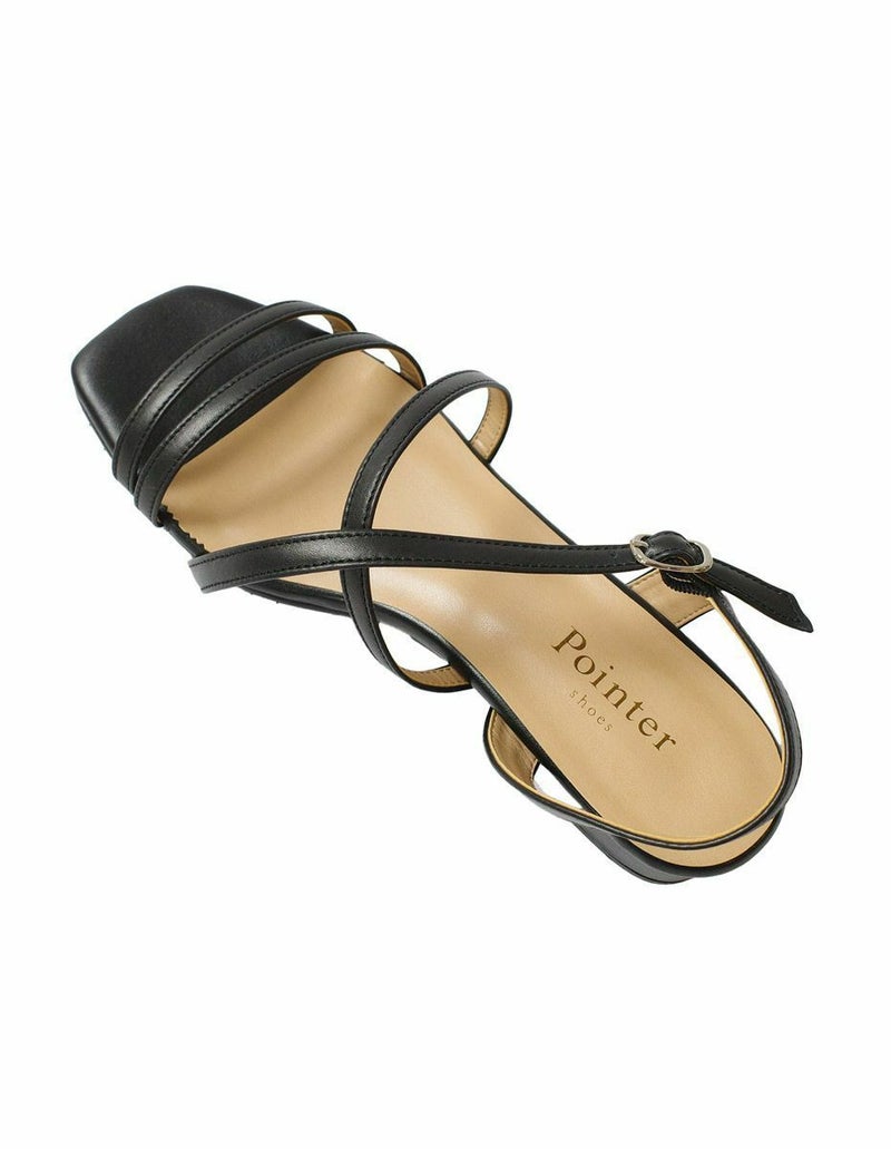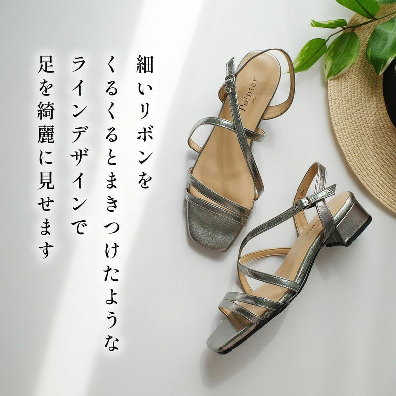 細いリボンを巻き付けたようなラインデザインの本革サンダル。