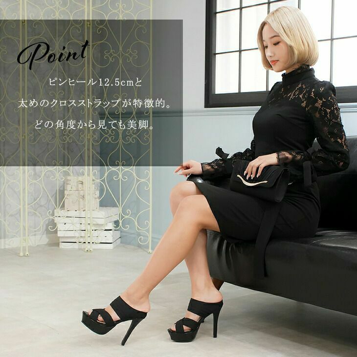 甲をしっかりホールドしてくれるので歩きやすい厚底で見た目よりも安定感があり、ピンヒールが足首を引き締めヘルシーな美脚を演出してくれます。