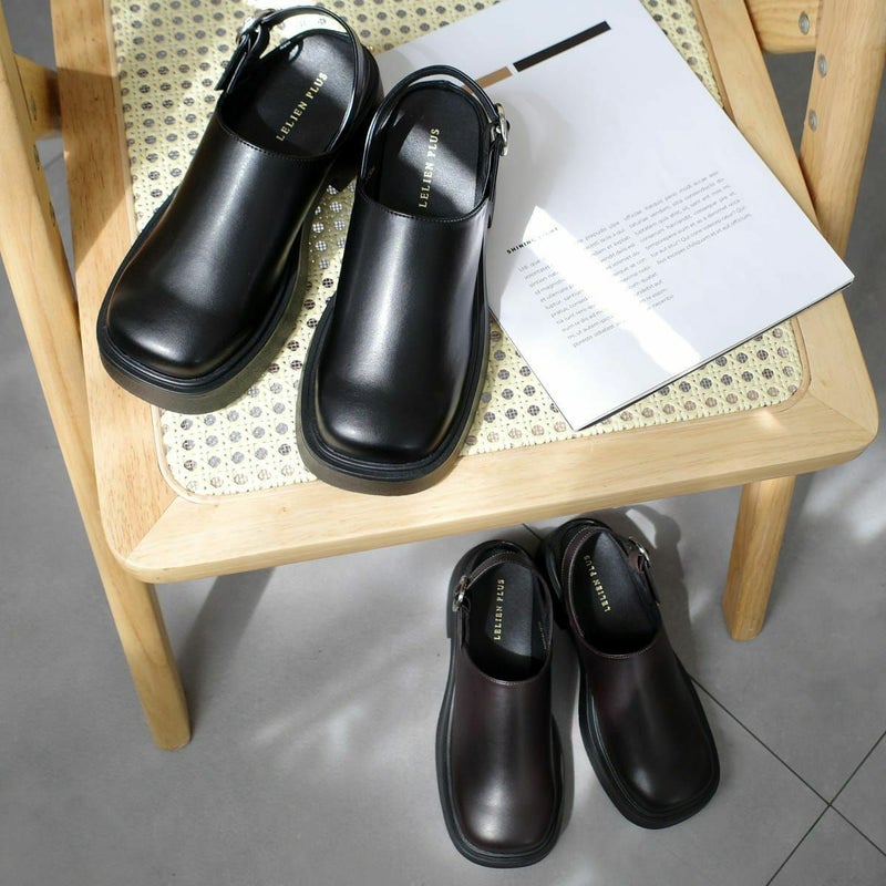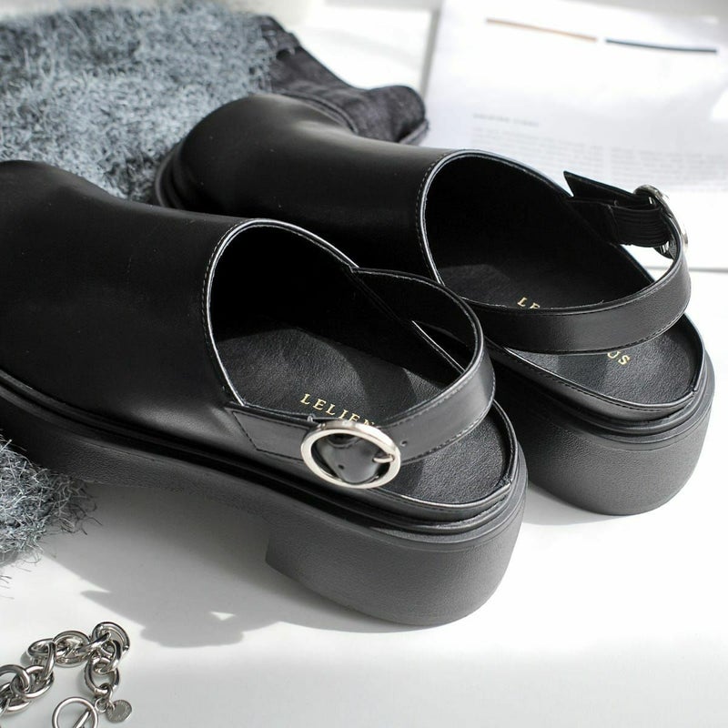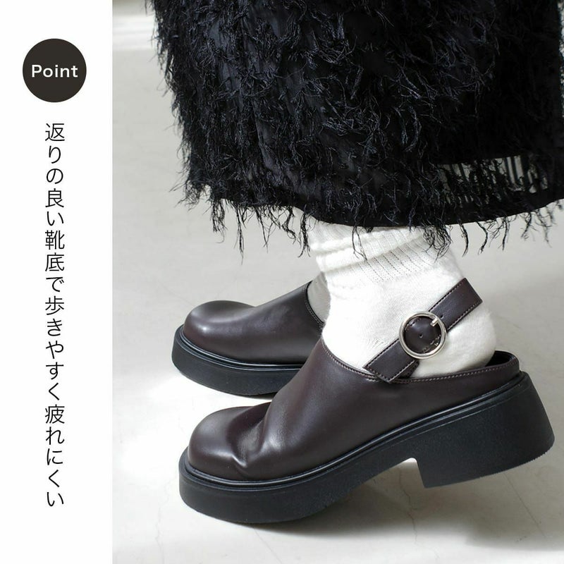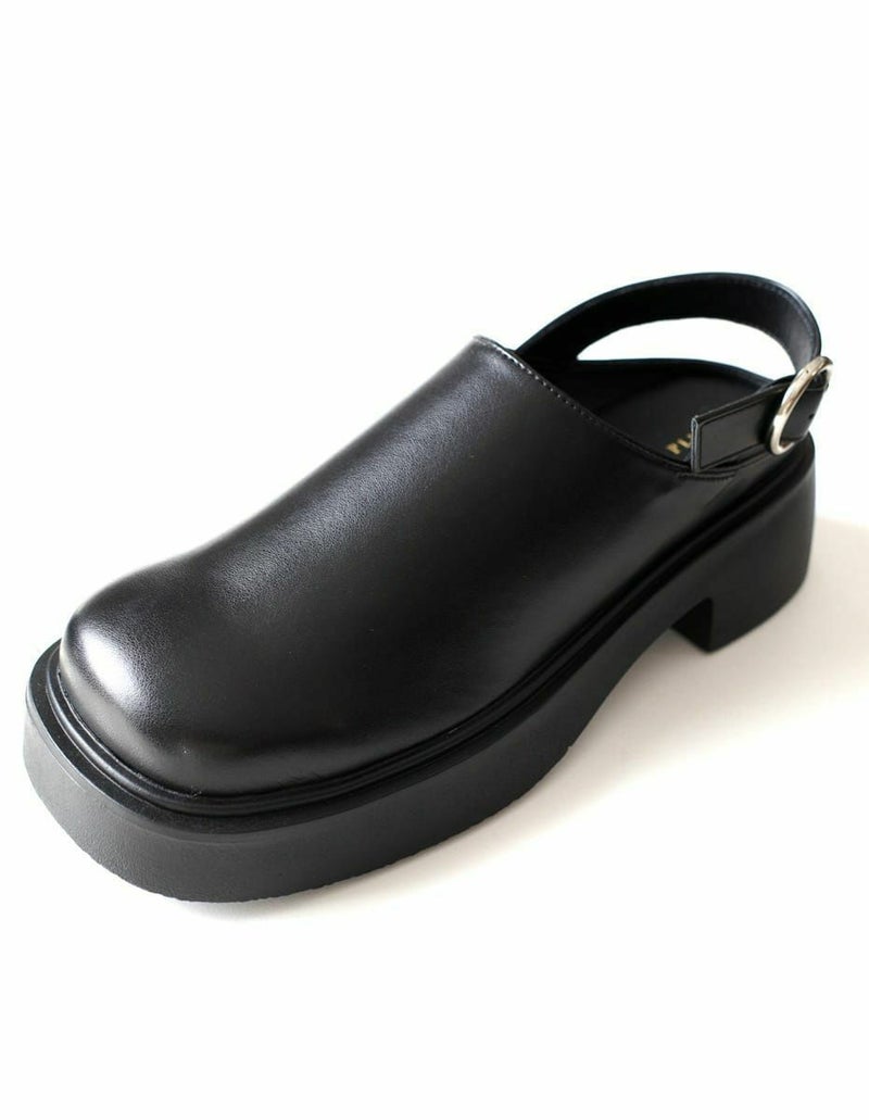 【期間限定SALE】プラットフォームベルトクロッグシューズバックストラップ厚底スクエアトゥサボサンダル レディース