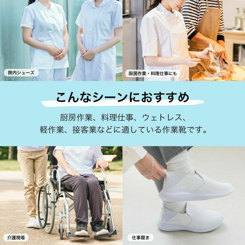 厨房作業、料理仕事、ウェトレス、軽作業、接客業などに適している作業靴。