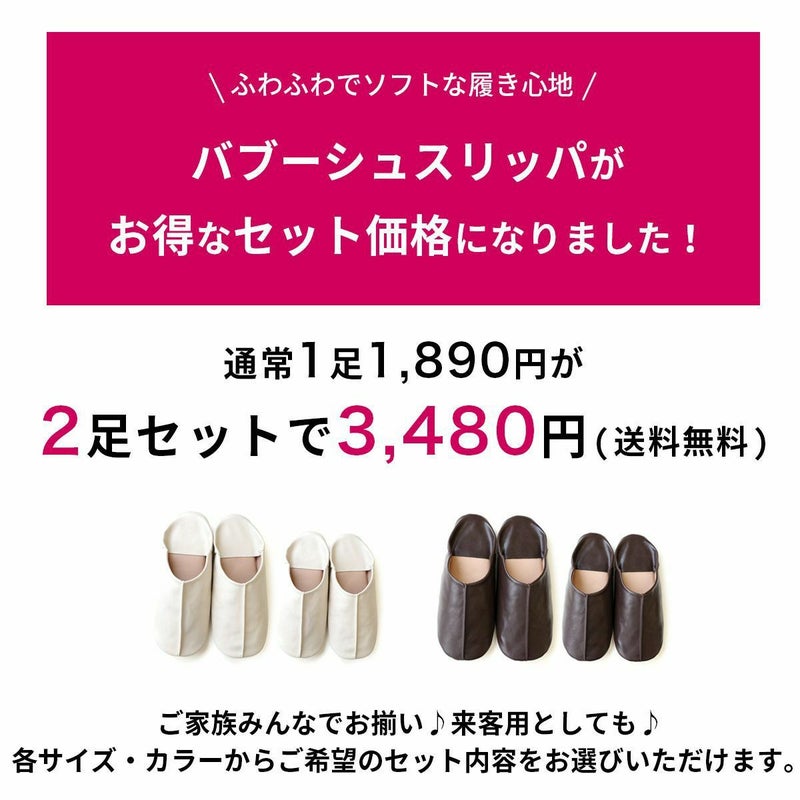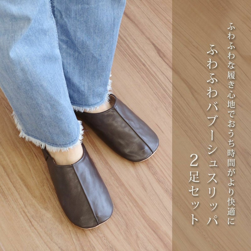 ふかふかでソフトな履き心地のバブーシュスリッパ2足セット