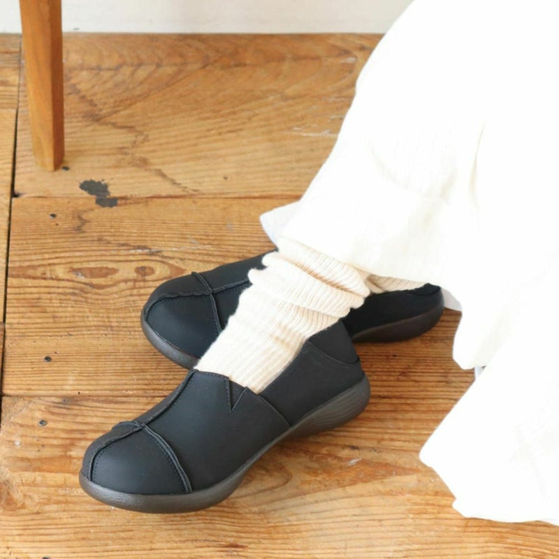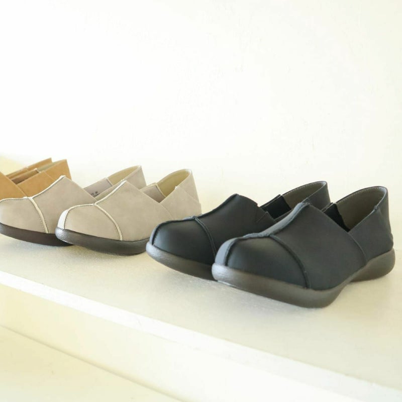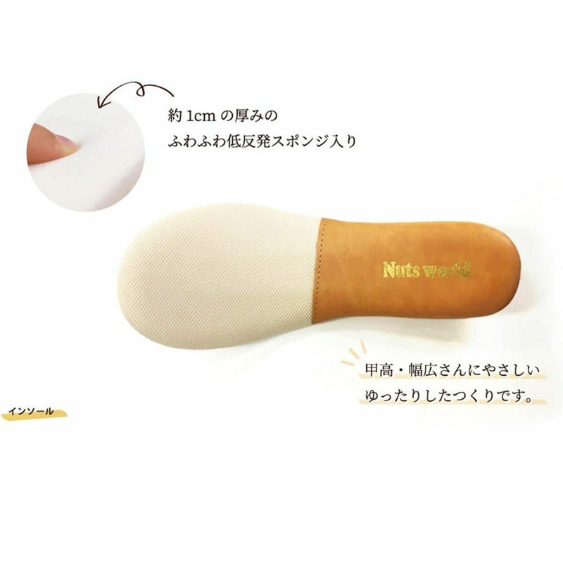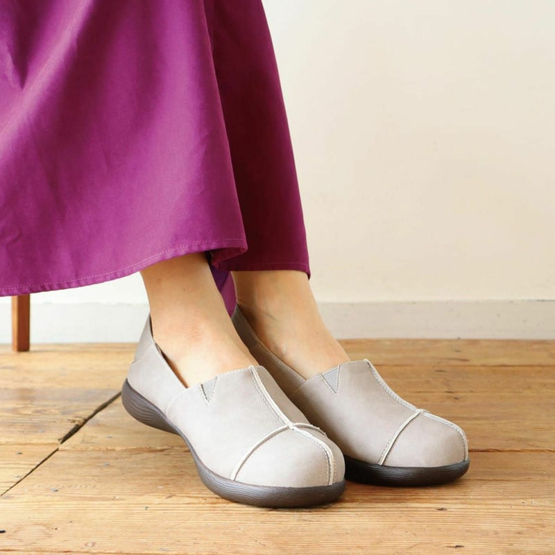 前に歩きやすい『ローリング設計』のソールがポイントです。ころんとかわいい + 歩きやすい “Nutsソール” を使ったスリッポン