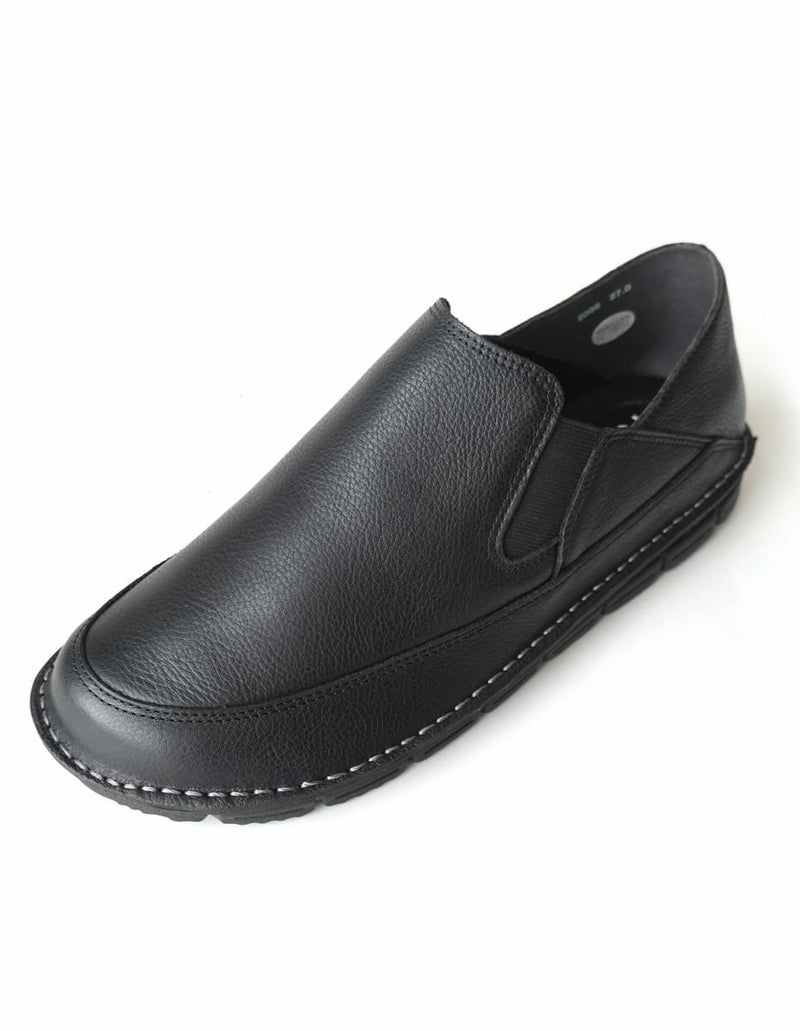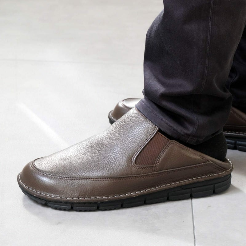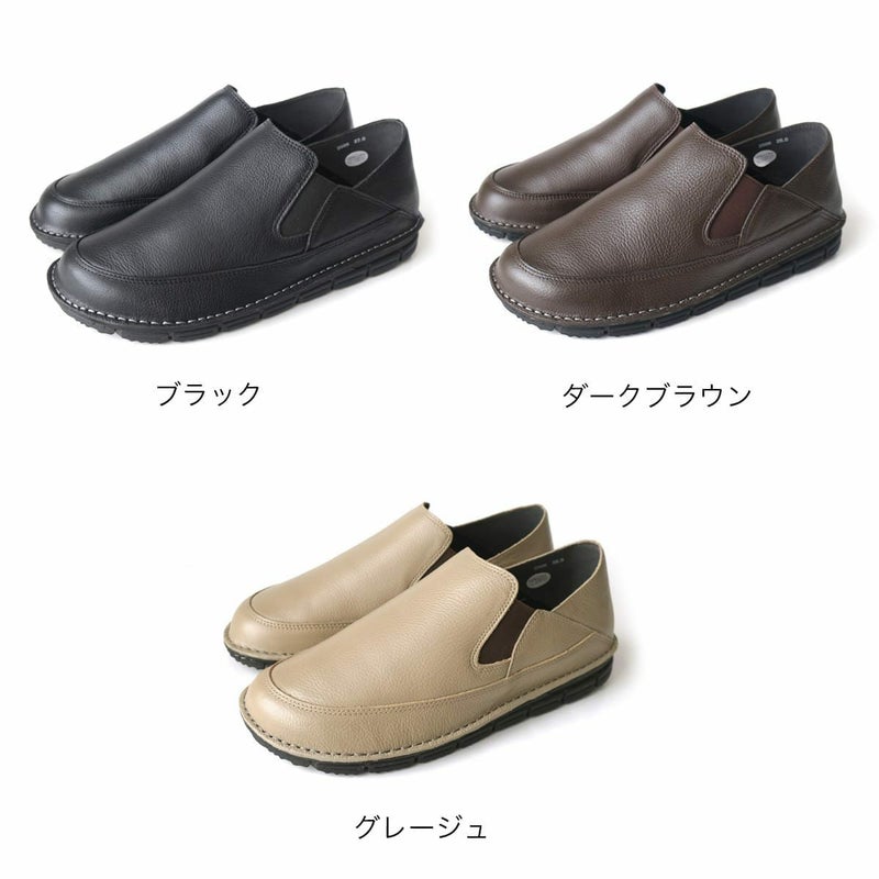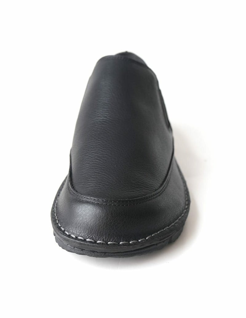 カカト部分はバブーシュ仕様。サイドゴムがあるため脱ぎ履きがスムーズ。上質な本革素材を使用し、シンプルながら洗練されたデザインで、大人の足元をワンランクアップ。