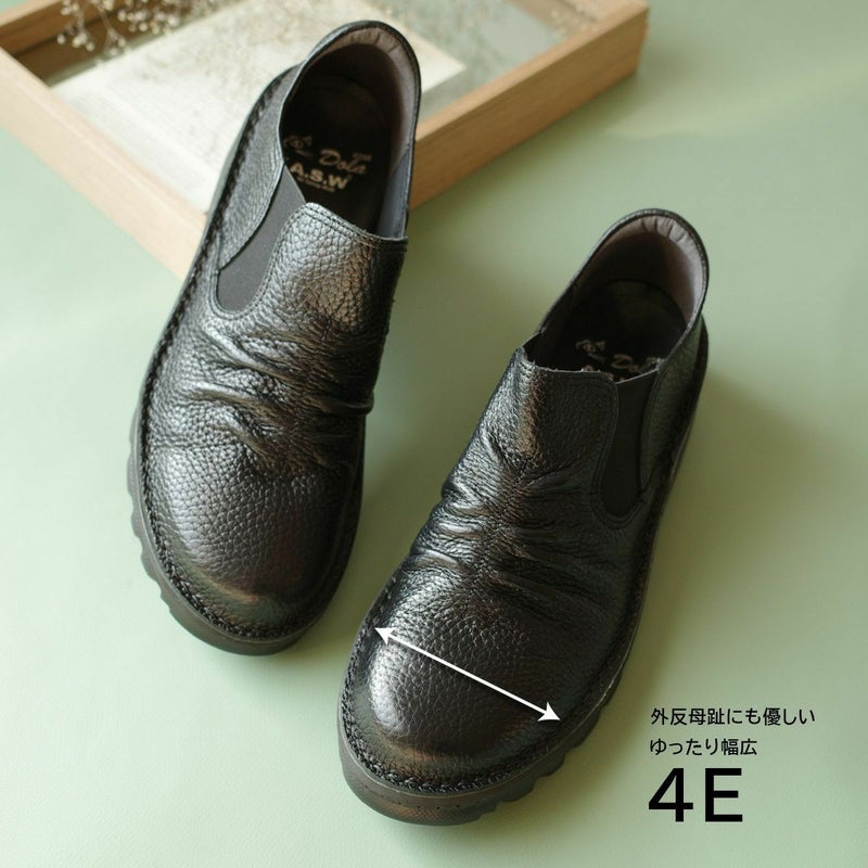 幅はちょうどよく、つま先はややゆったりしています。柔らかい革なので歩きやすいです。スッキリしたシルエットなのも良いです。