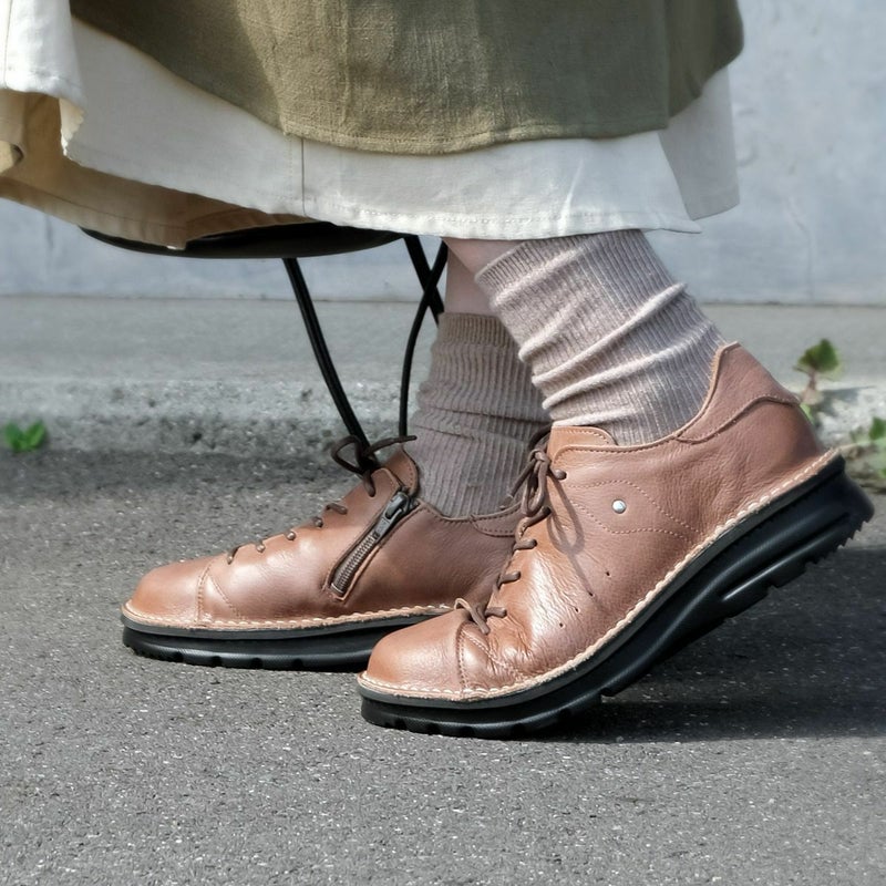 サイドファスナーで紐をほどかずにさっと履ける「空気をはいた感覚 それで歩こう」