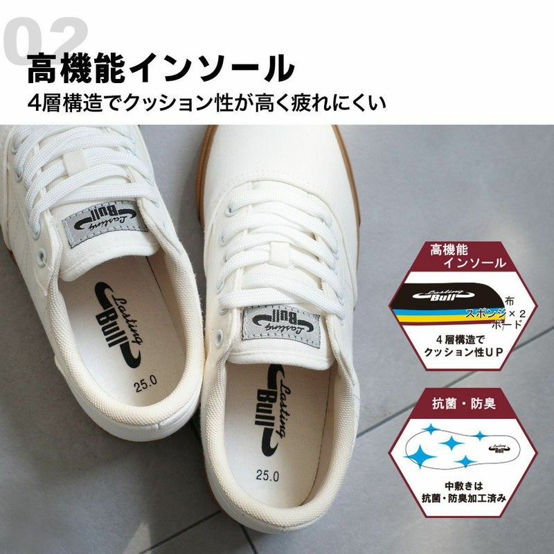 滑りにくさを考慮した耐滑ソールと、厚みのある甲タンでしっかり足をホールドし、安心感のある履き心地4層構造で高いクッション性のインソールには抗菌・防臭加工が施されています。