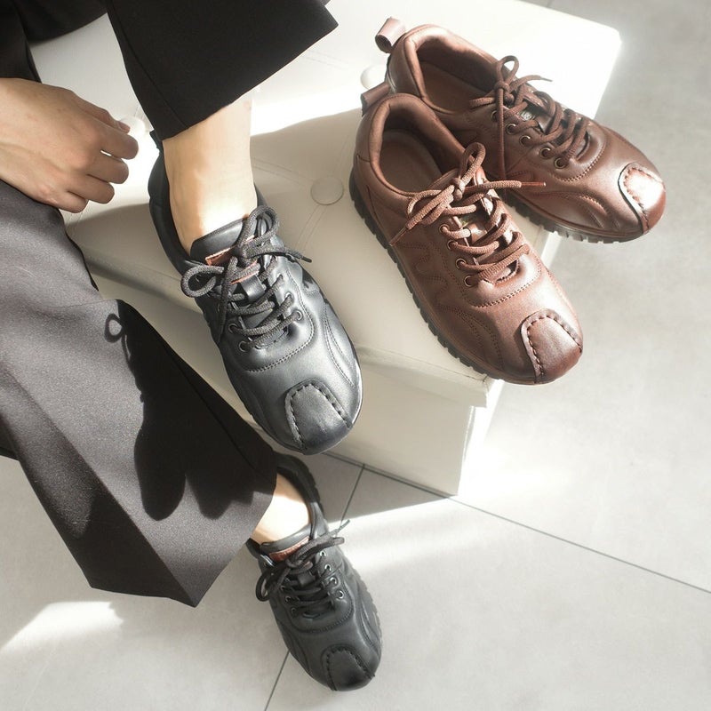 やわらかな本革を使用した、レースアップスニーカー