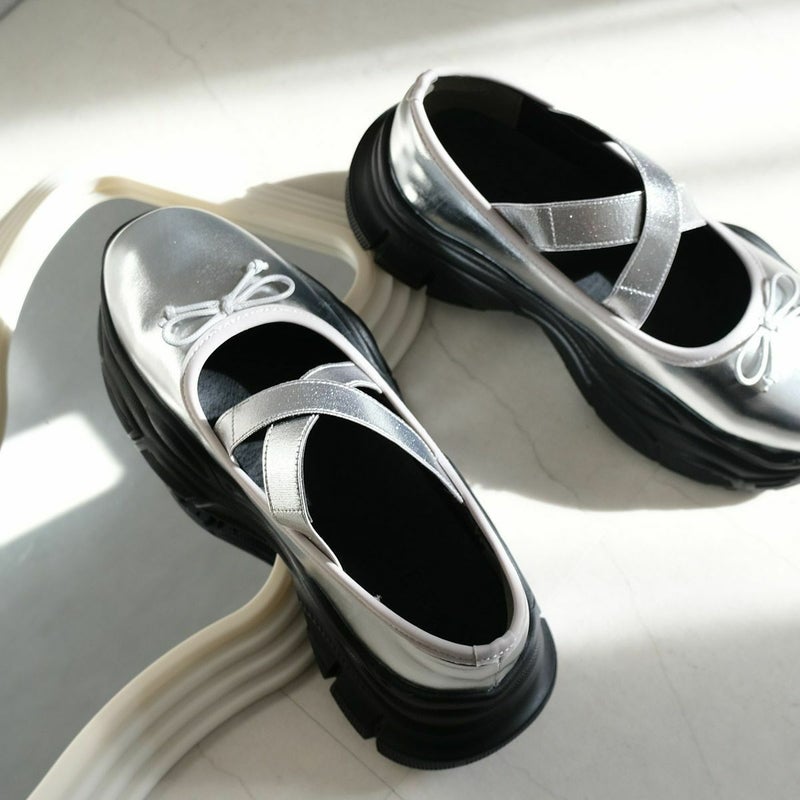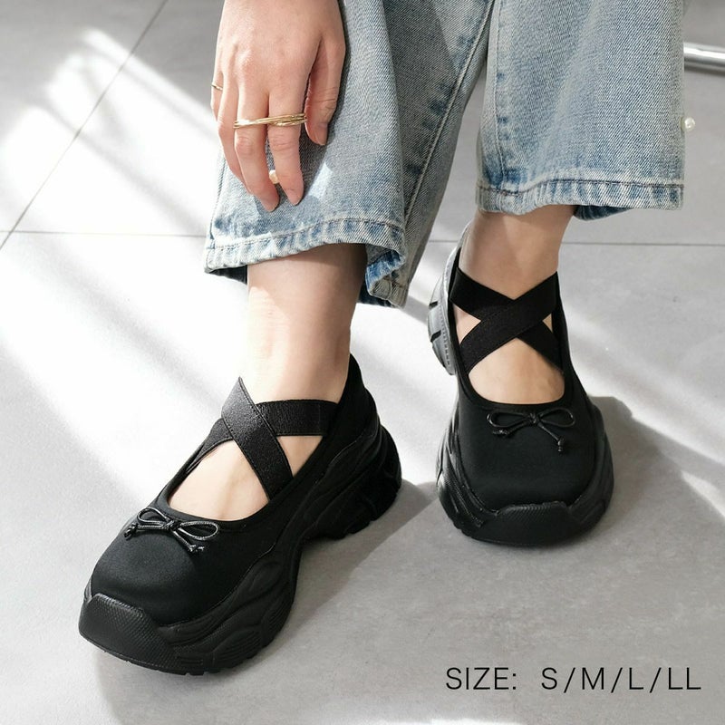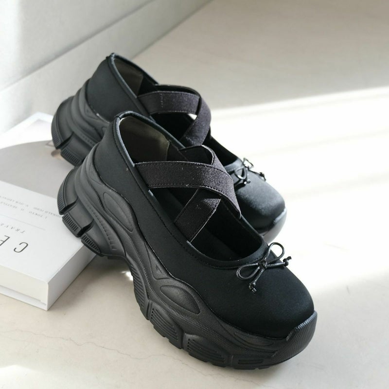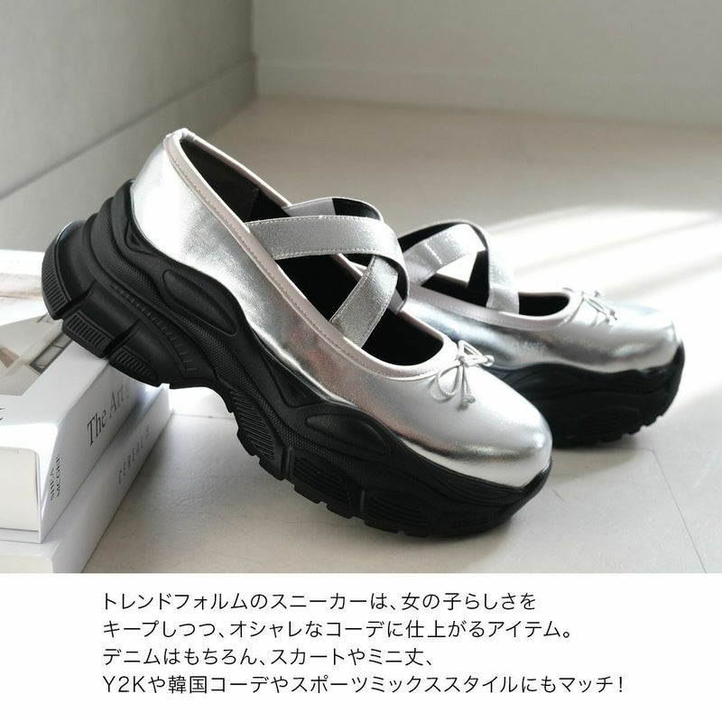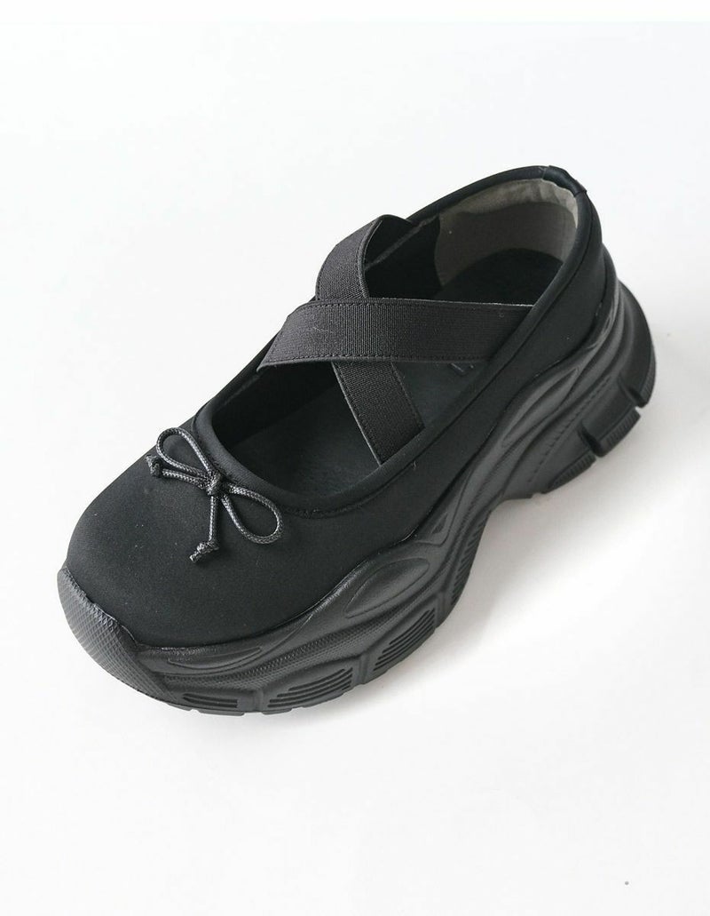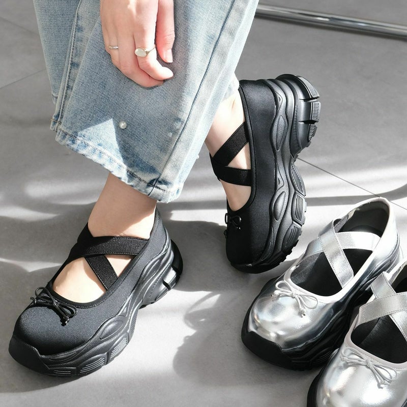 ぽってり厚底&クロスゴムがポイント!トレンド感アップのバレエシューズスニーカー