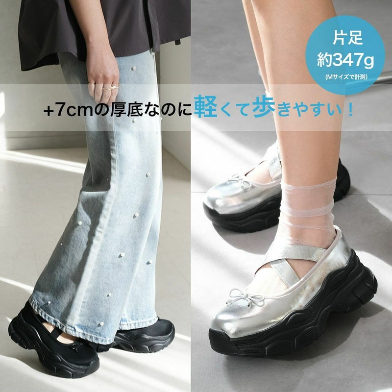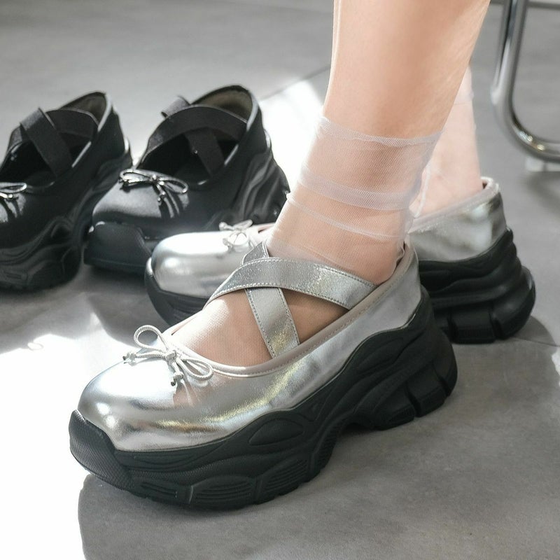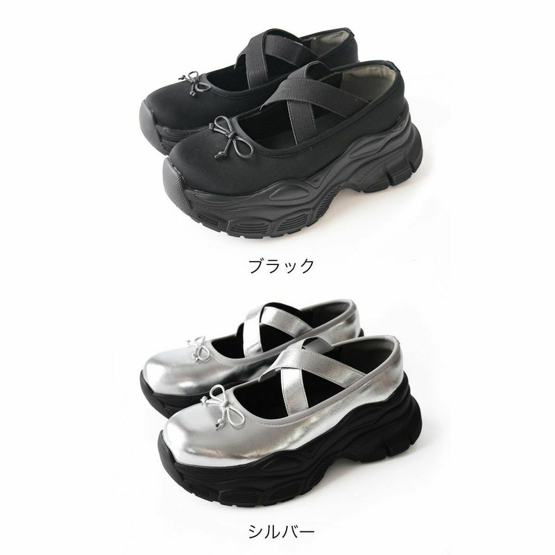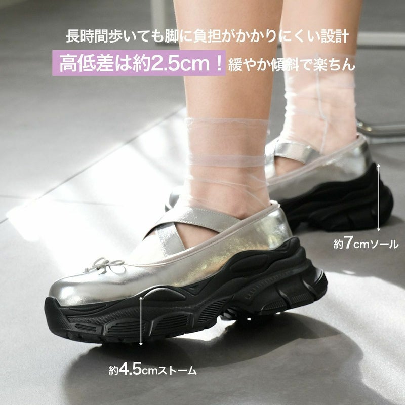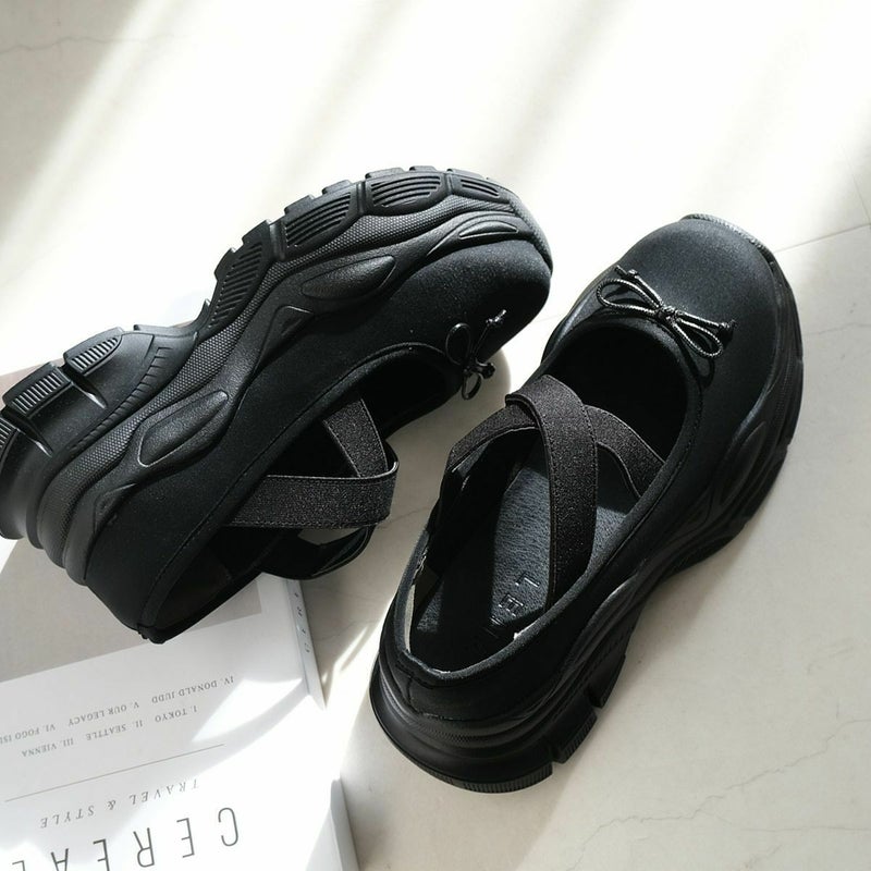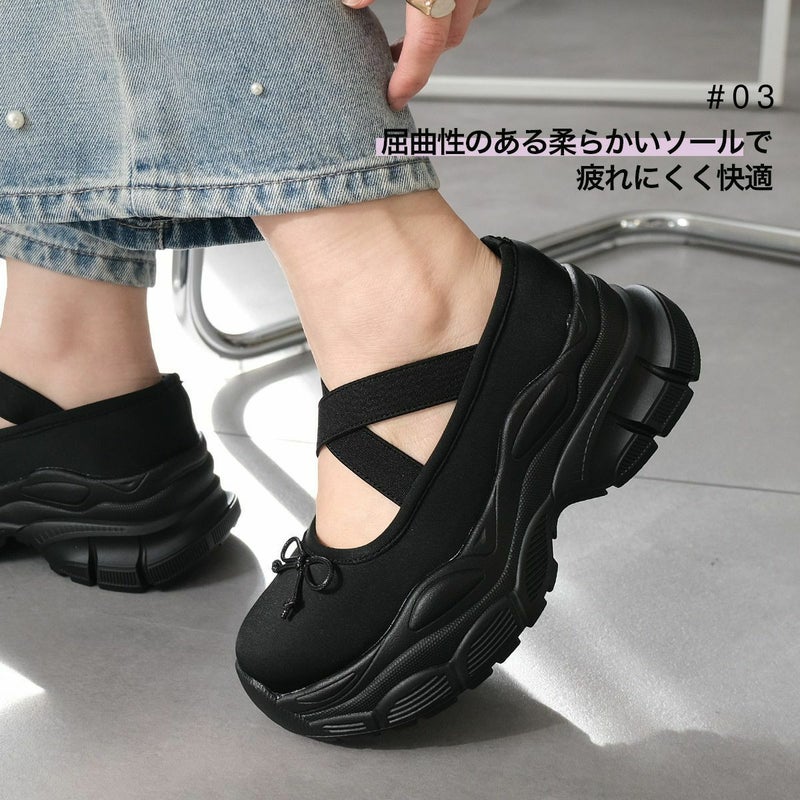 ぽってり厚底&クロスゴムがポイント!トレンド感アップのバレエシューズスニーカー