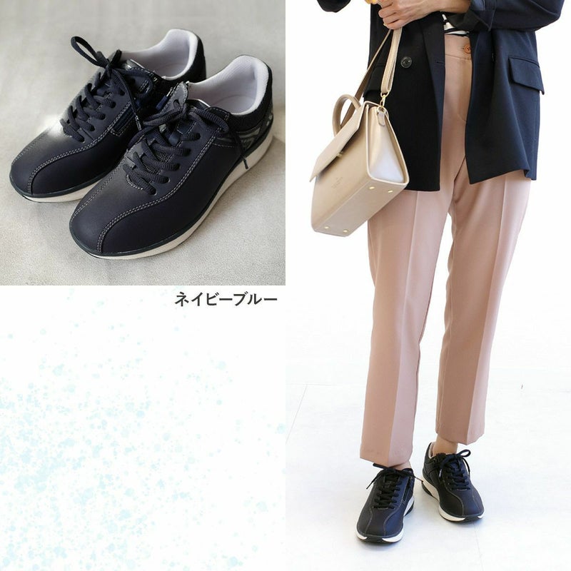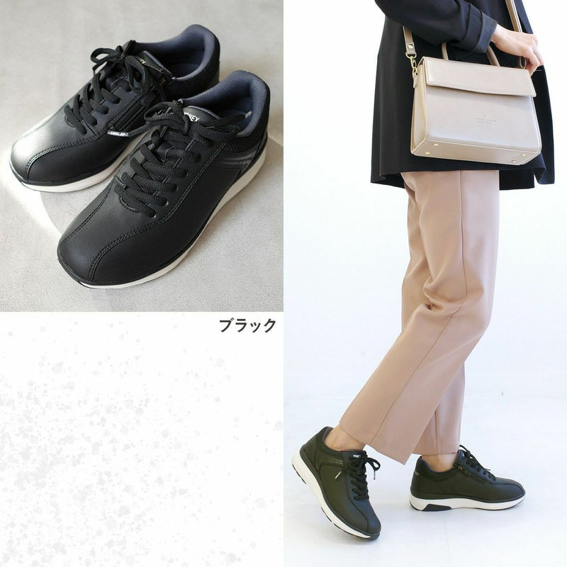 3.5Eでも見た目はすっきり。滑りにくいソールで雨の日も安心。つま先・かかとの角度と厚みのあるソールが歩幅アップを実現。