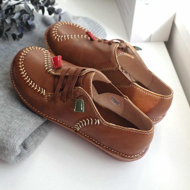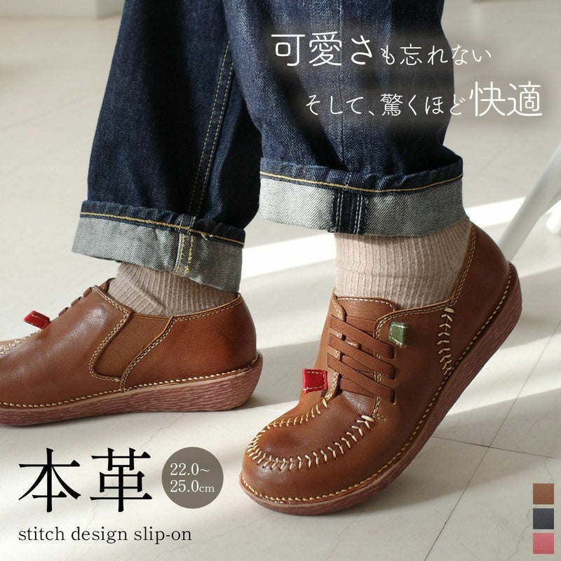 【在庫限り!特別価格!】本革ステッチデザインスリッポンスニーカー靴 レディース