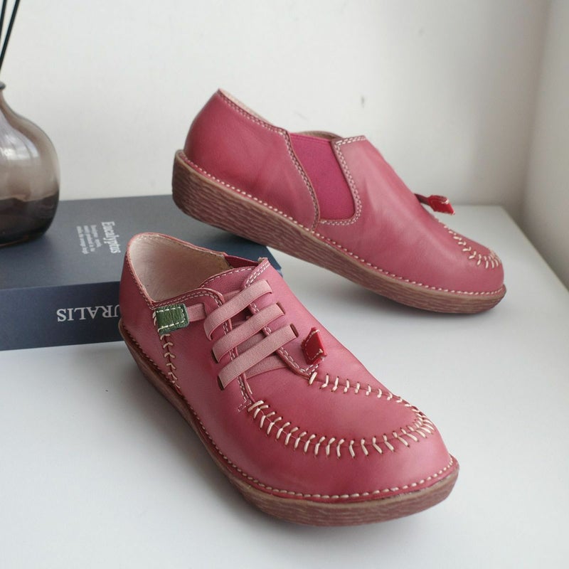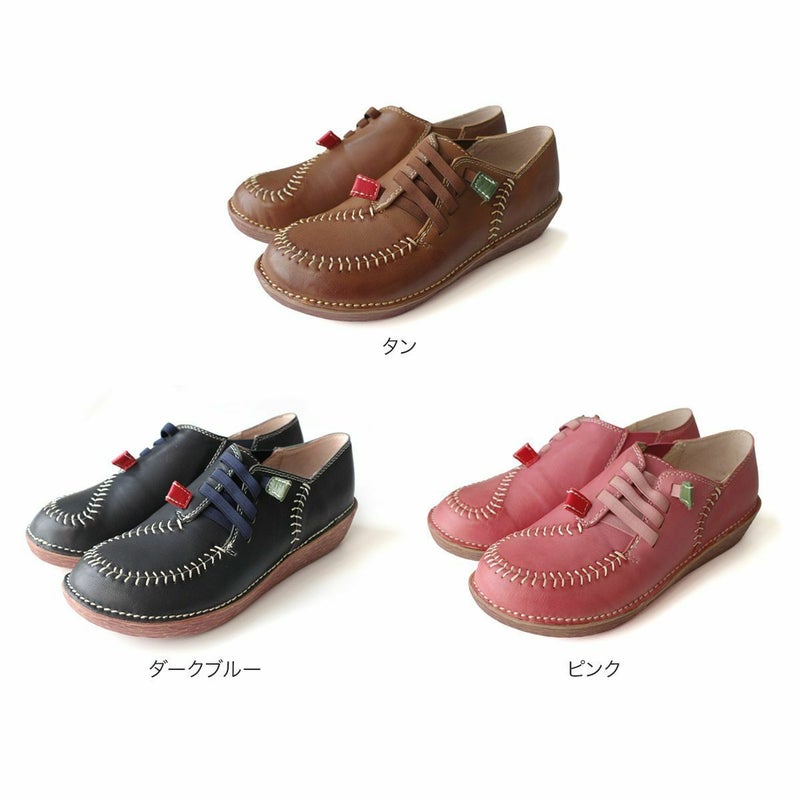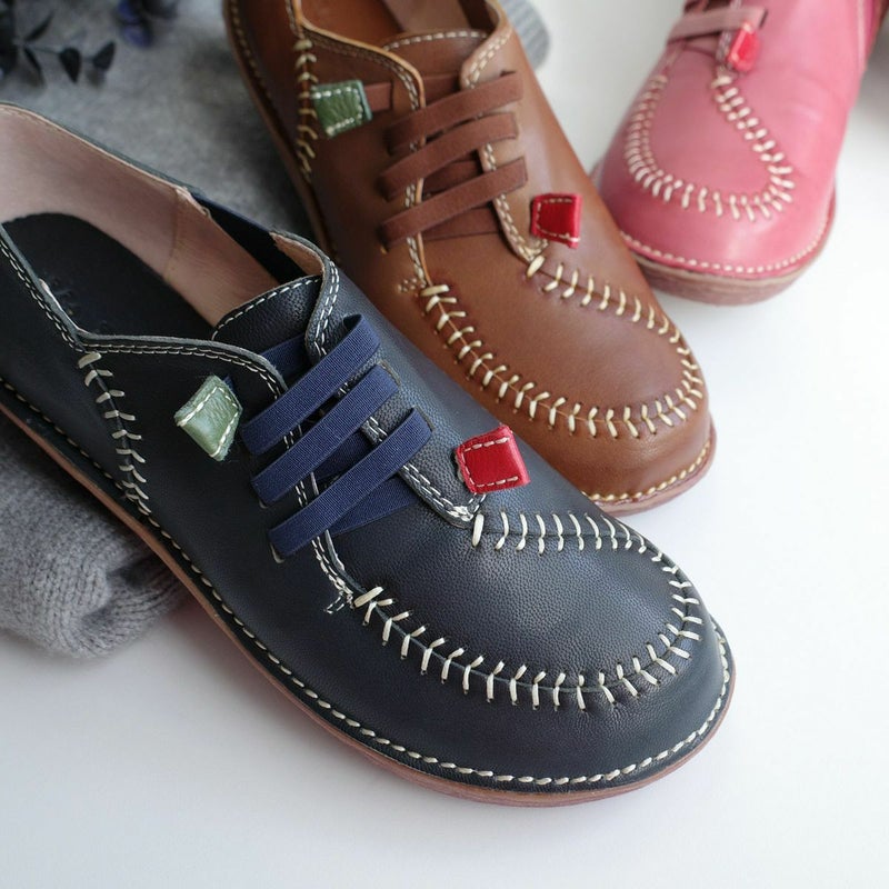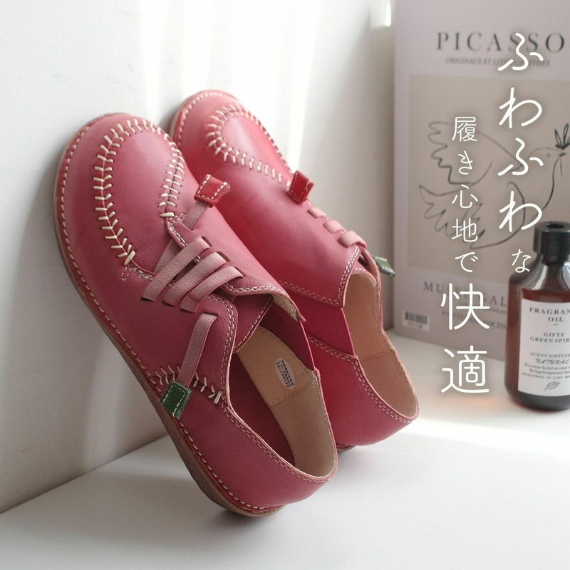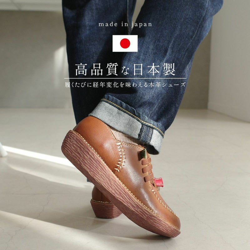 足馴染みの良いやわらかな本革製で、心地よいフィット感。インソールもふかふかクッションで快適です。ゴム紐とサイドゴア付きで脱ぎ履きしやすく、さっと足入れできて楽ちんです。