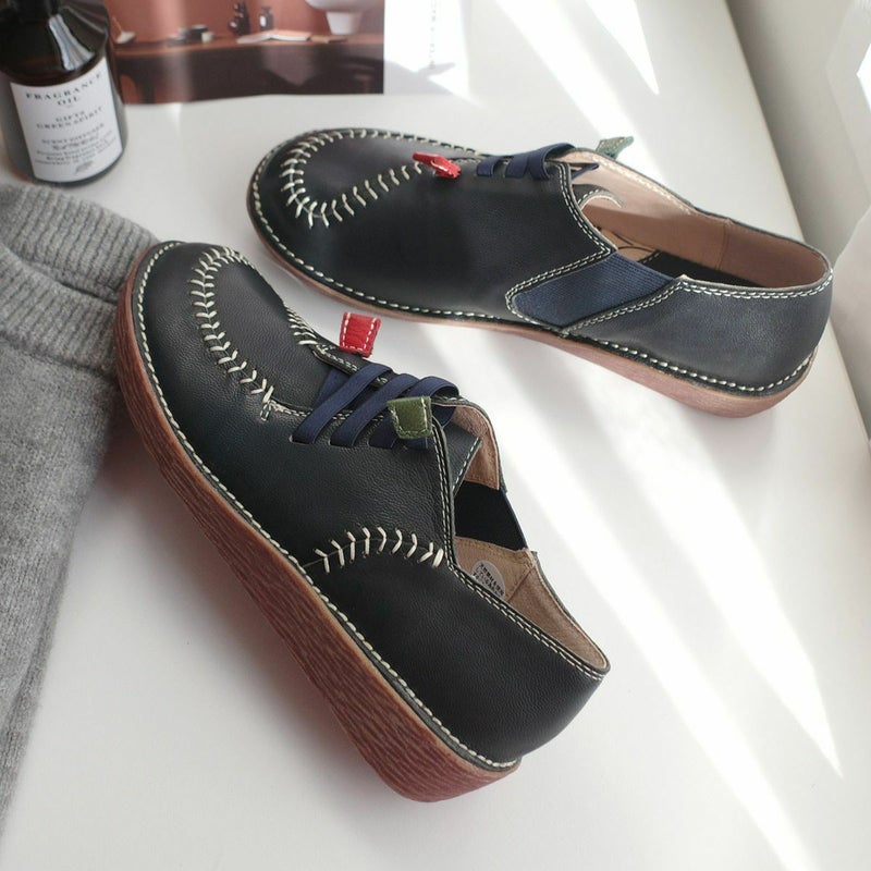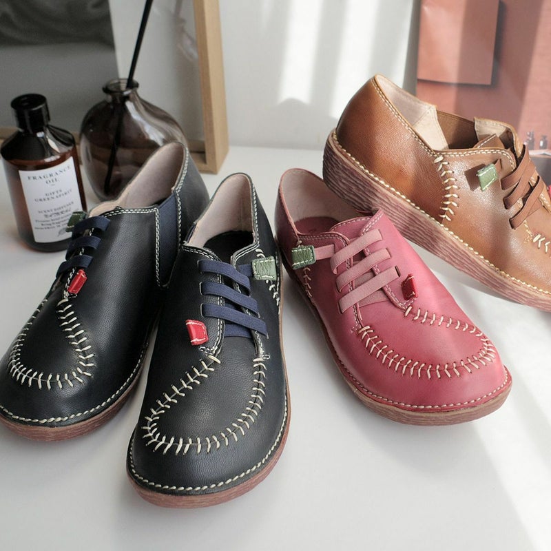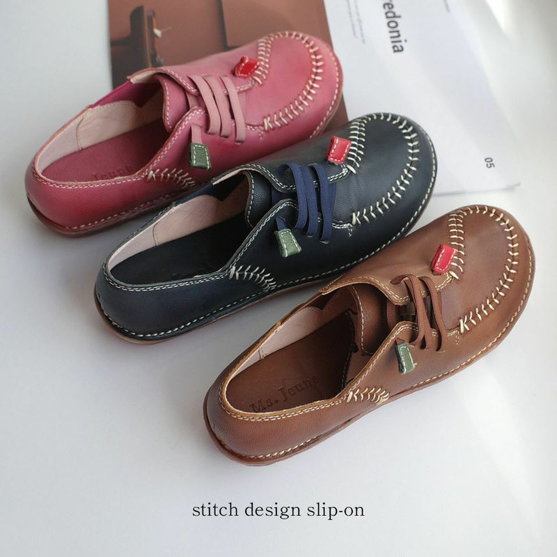 大胆なステッチと絶妙カラーがコーデのポイントになるスリッポン