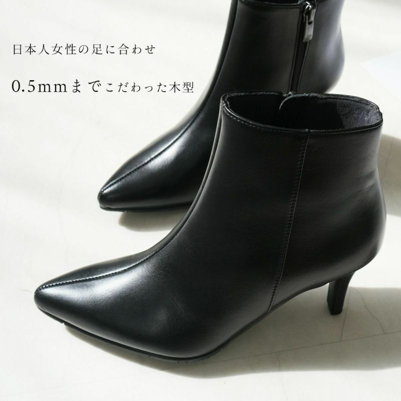 ポインテッドトゥブーツ日本製本革 レディース