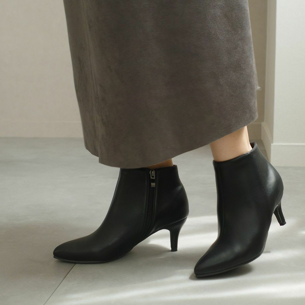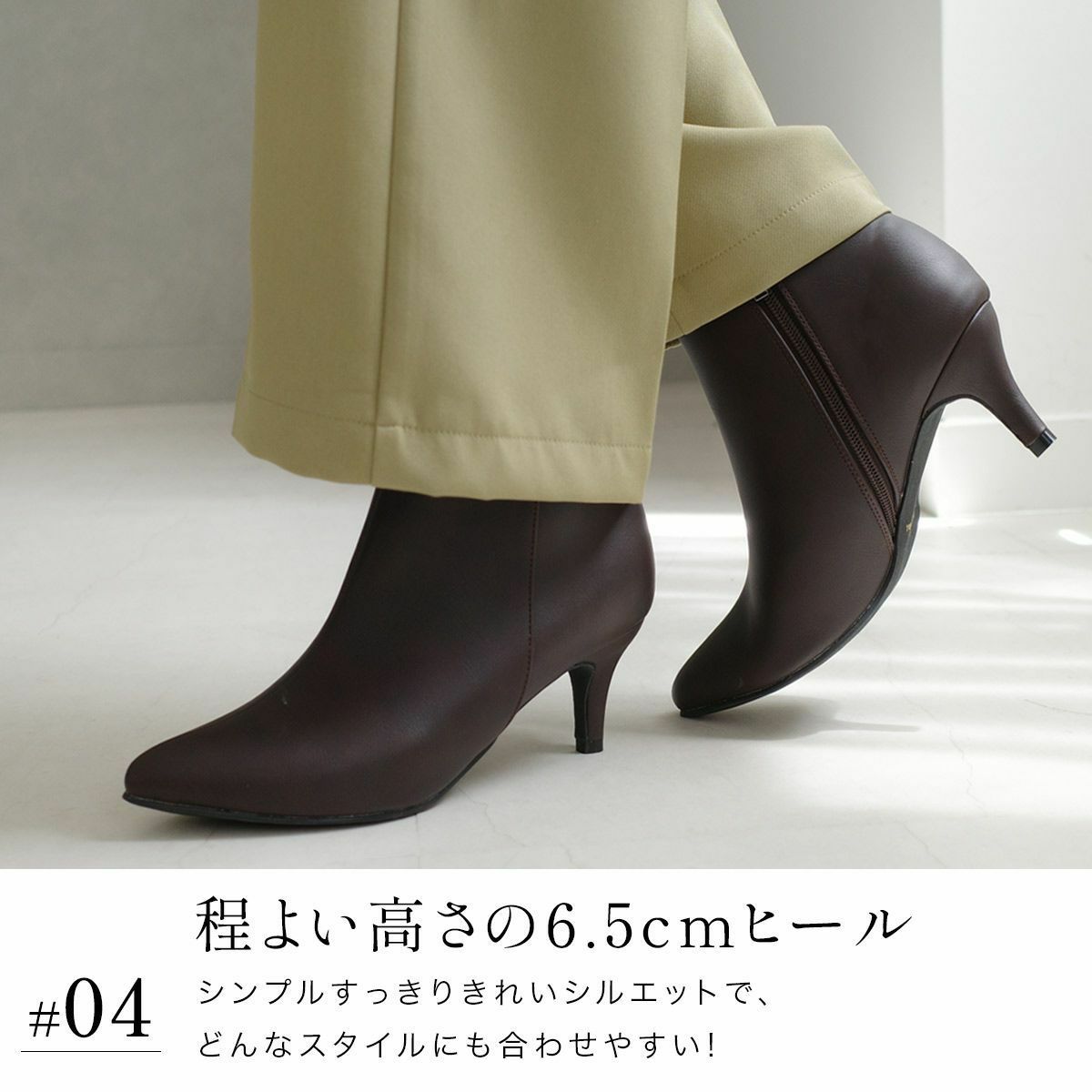 内貼りは目の細かいクッションで足あたりが良く程よい高さで美脚も叶う程よい高さの6.5cmヒールとシンプルすっきりきれいシルエットで、どんなスタイルにも合わせやすい!
