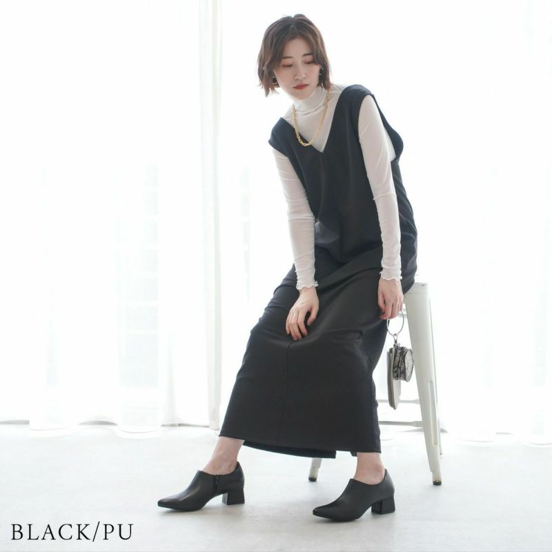 太めのチャンキーヒールで安定感も抜群で歩きやすいW低反発クッションで柔らかな履き心地
