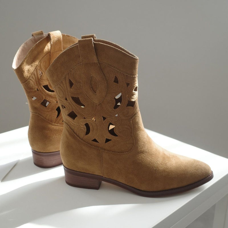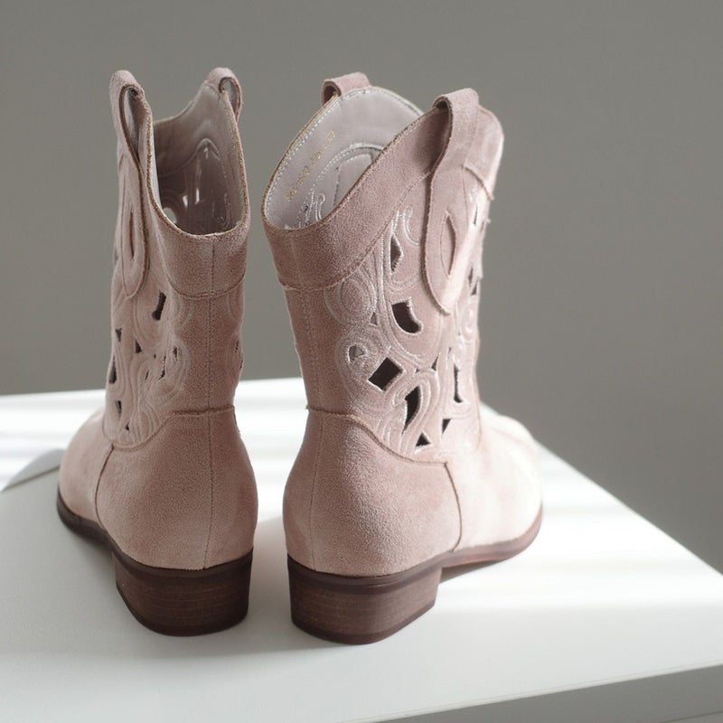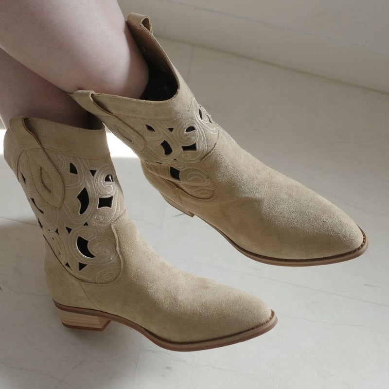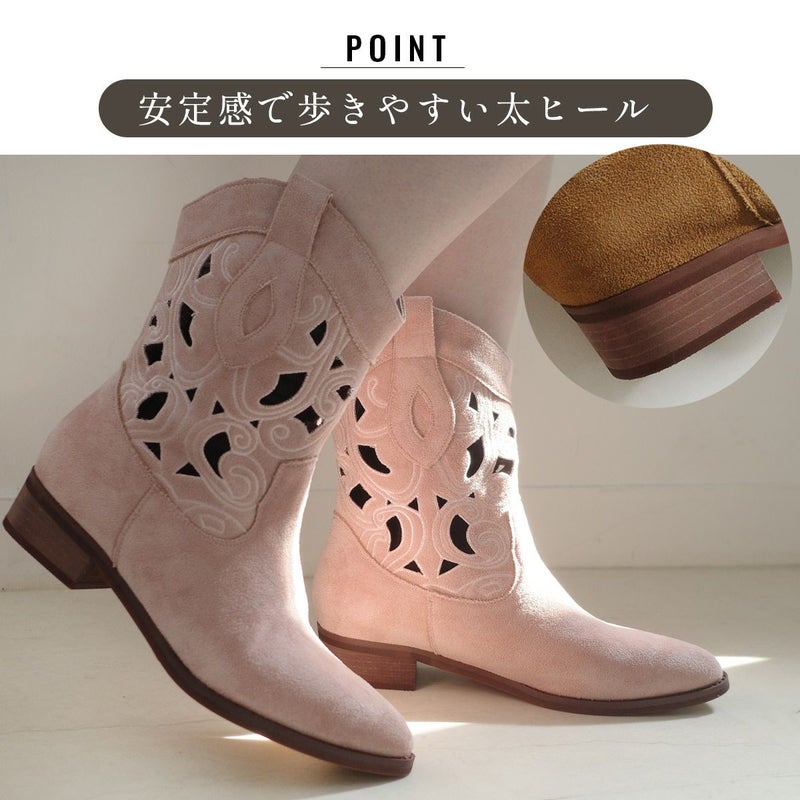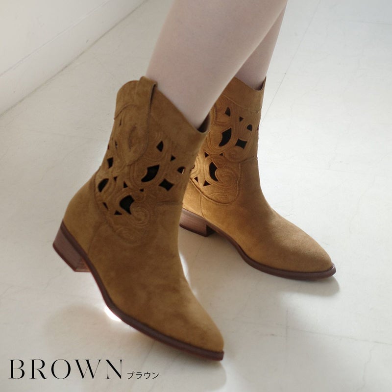 パンチングウエスタンブーツショートスエード レディース