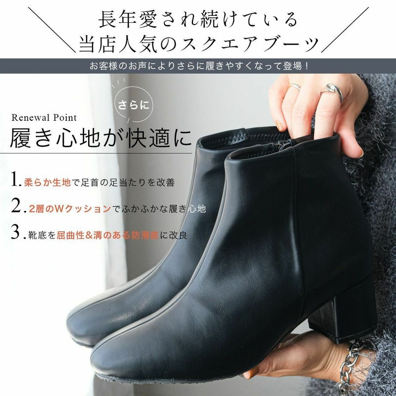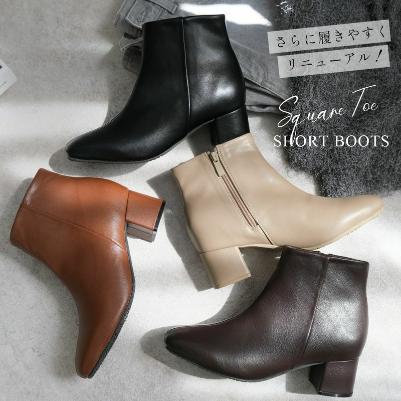 更に履きやすく新改良!シンプルスクエアトゥショートブーツ