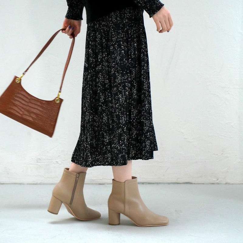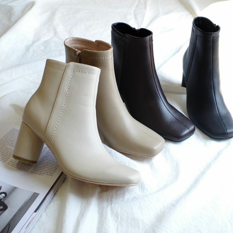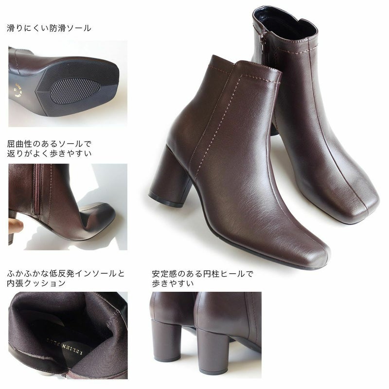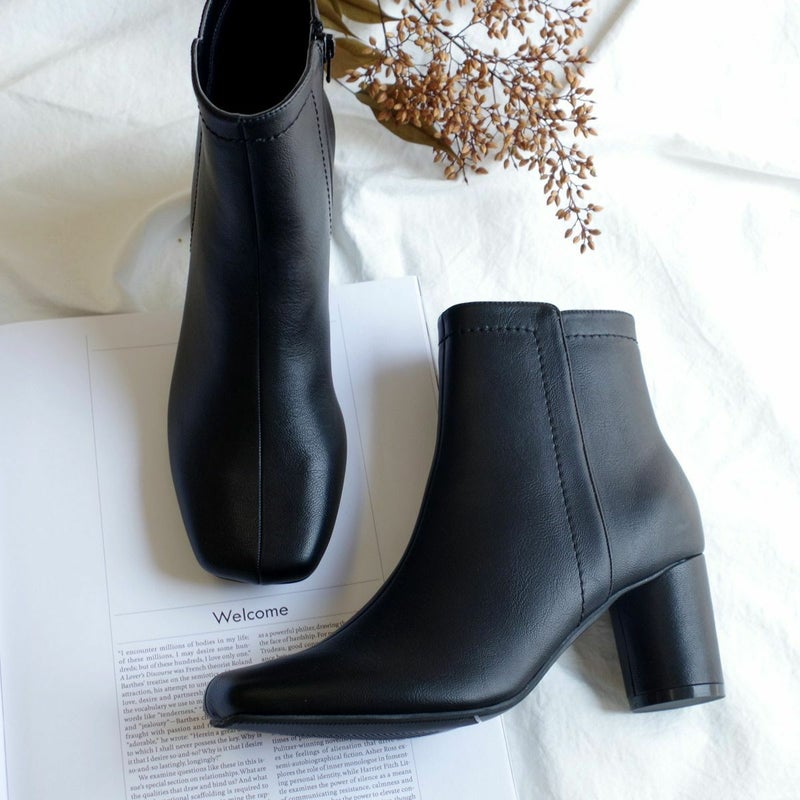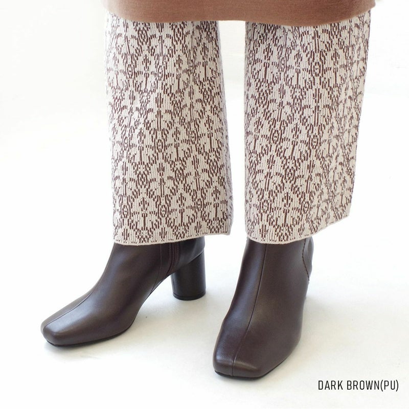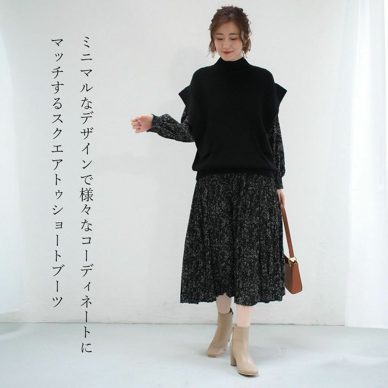【在庫限り!特別価格!】スクエアトゥショートブーツ円柱ヒール レディース