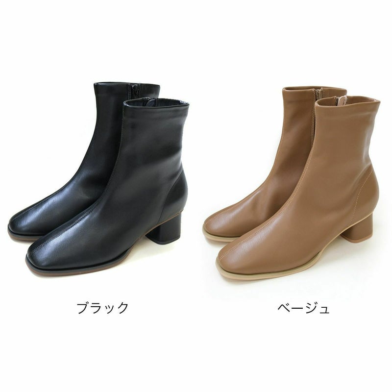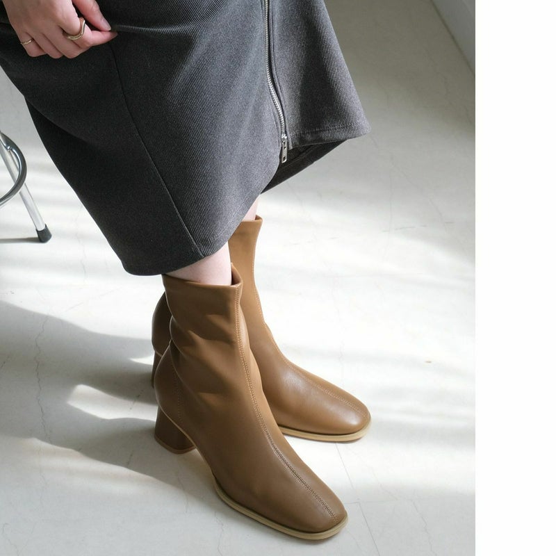 柔らかストレッチで細見え!スクエアトゥショートブーツ